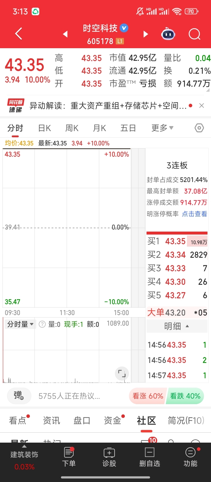 1、时空科技,期待继续数板。加油!