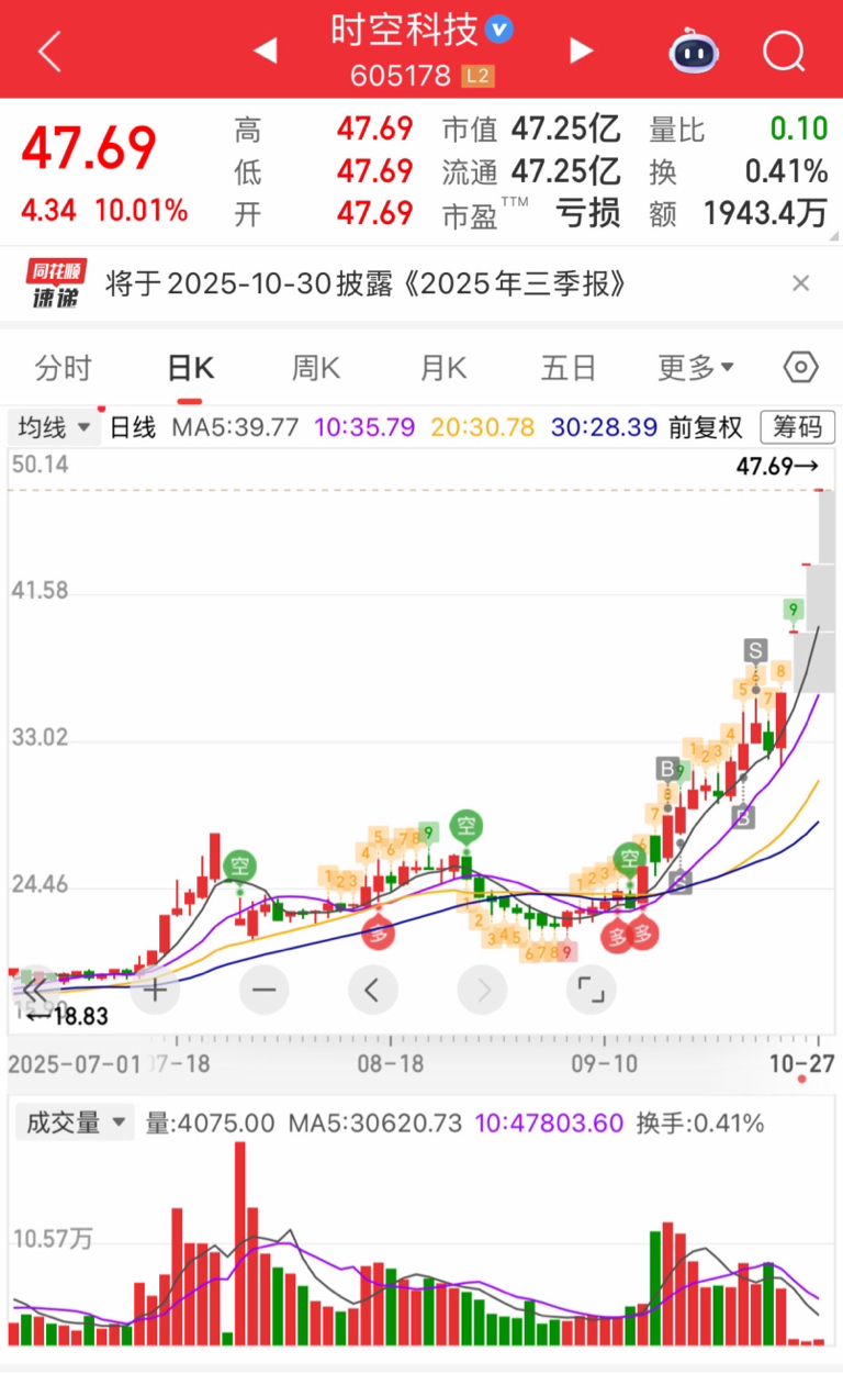 $时空科技(SH605178)$ 持股时每天都在上涨的恐惧中,毫无理由的涨,现在看高攀不起