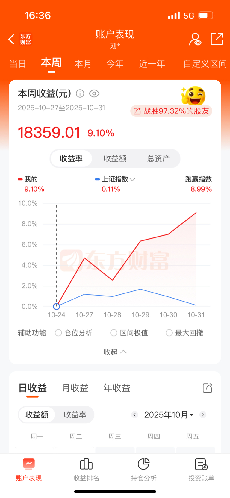 $时空科技(SH605178)$ 考验人性和心态,这周盈利18359.01元,10月整体以盈利收尾,期待精彩11月!一起加油,股友们!