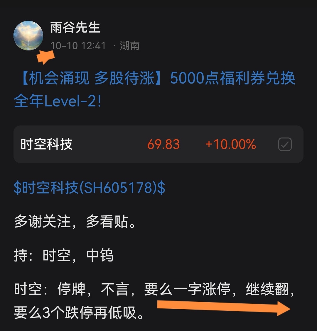 $时空科技(SH605178)$ 关注的看贴,没有关注点个关注再看帖,看时间再评论,时空还在,9.85减了半仓,10.10提示翻倍今天也实现了,历经45天涨幅1.6倍。亚太历经10天也再次实现涨停。