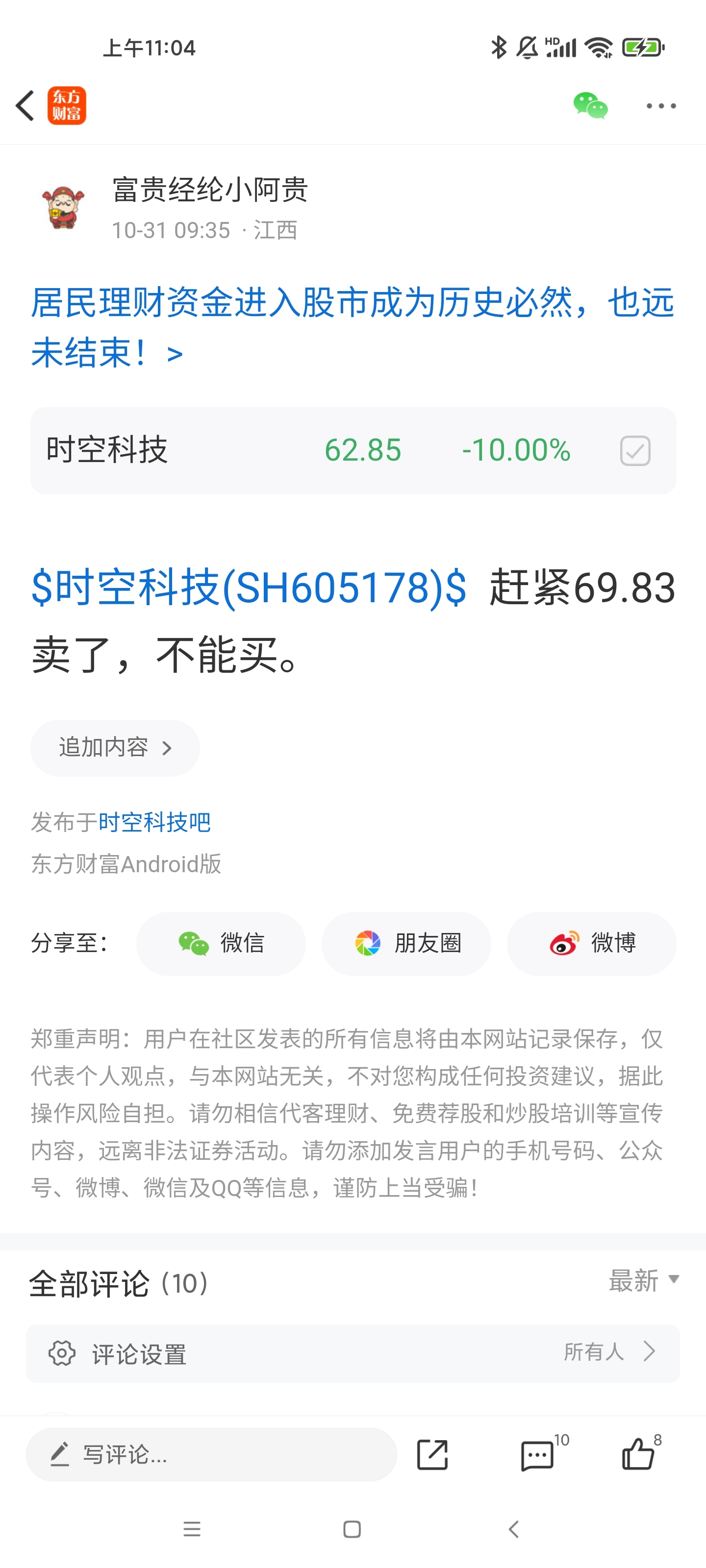 温馨提示: 1.根据《证券法》规定,禁止编造、传播虚假信息或者误导性信息,扰乱证券市场;2.用户在本社区发表的所有资料、言论等仅代表个人观点,与本网站立场无关,不对您构成任何投资建议。用户应基于自己的独立判断,自行决定证券投资并承担相应风险。《东方财富社区管理规定》