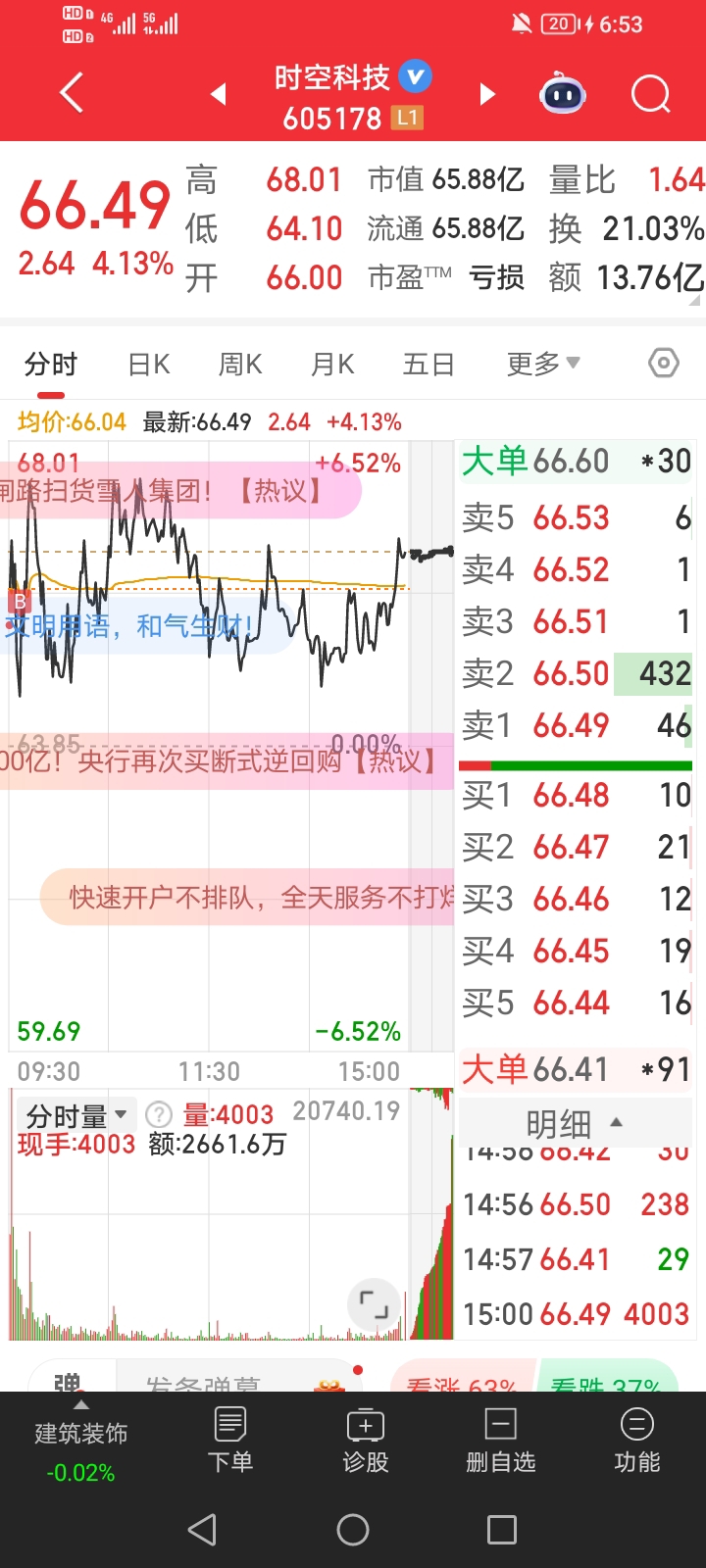 $时空科技(SH605178)$ 人有多大胆,地有多大产。