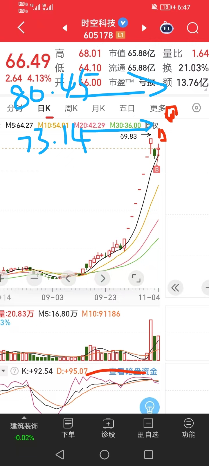 $时空科技(SH605178)$ 立帖为证:明天星期三收盘价:73.14元。后天星期一四收盘价:80.45元,星期五收盘价:84.66元。