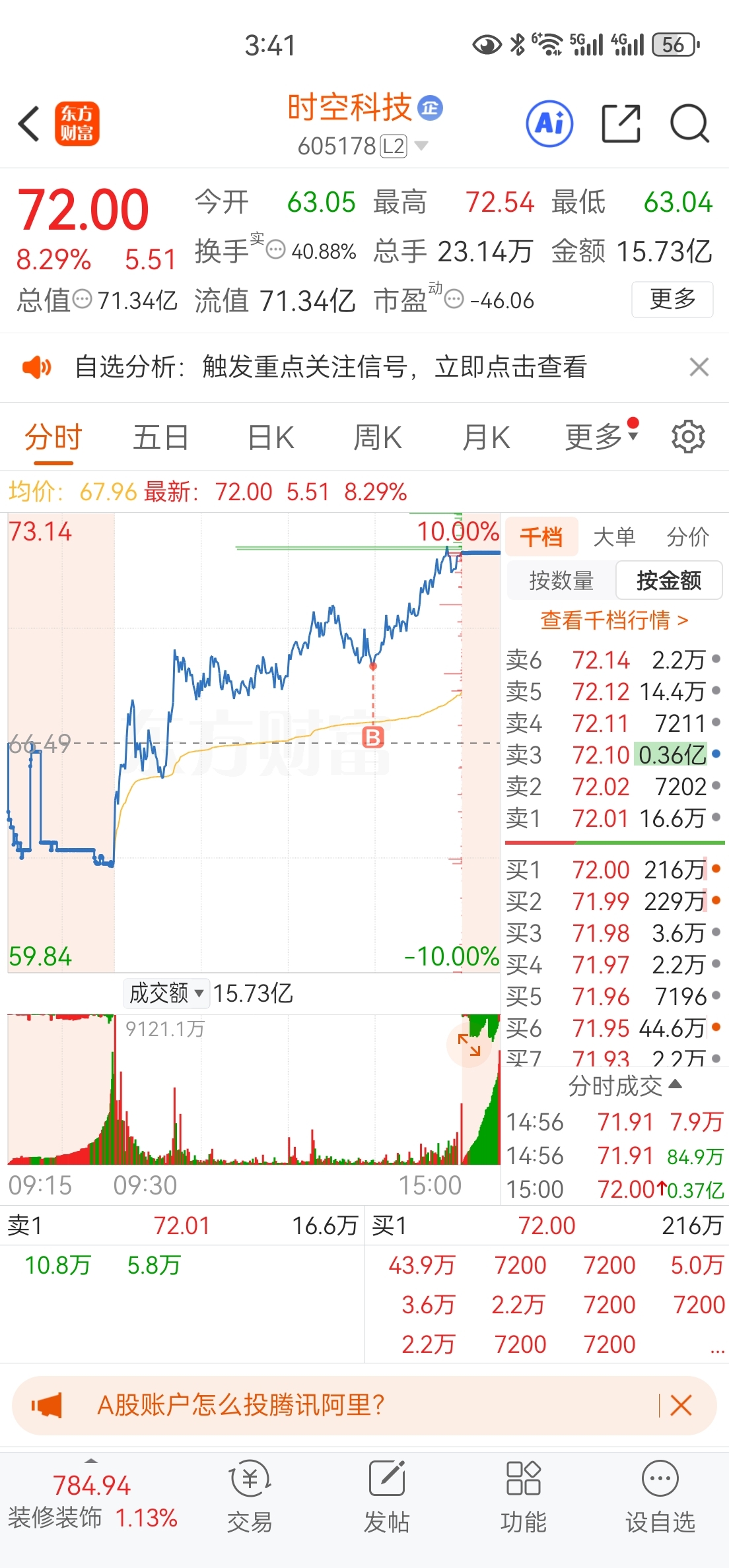 $时空科技(SH605178)$
