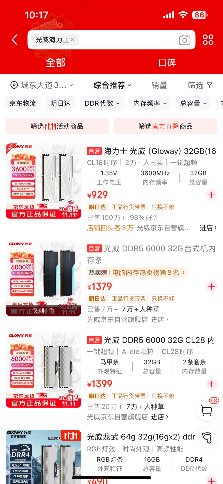 我不相信京东销量第一、卖断货的光威Sk海力士DDR5闪存比中间商香农卖的少!!!