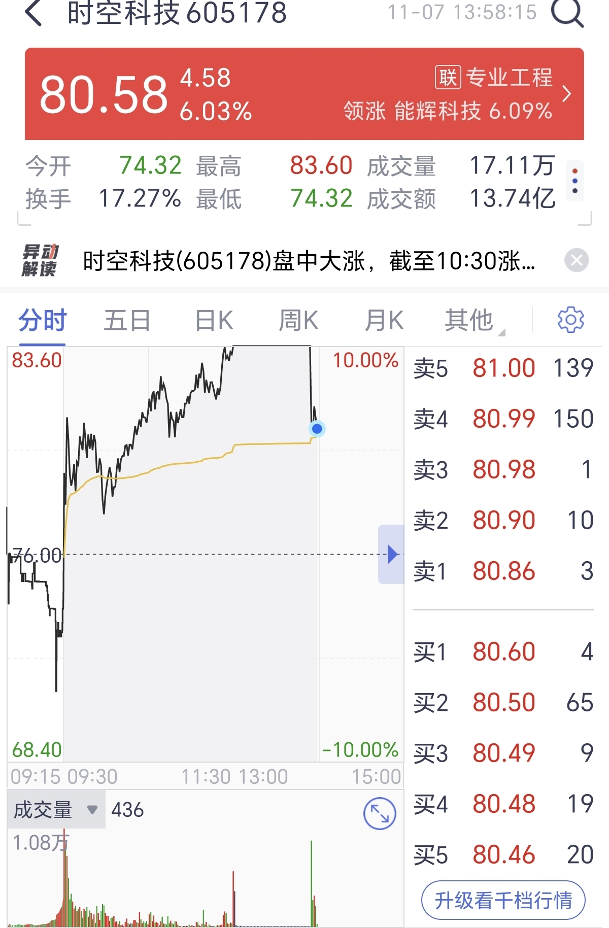 $时空科技(SH605178)$ @妙想 不会天地板吧?涨停板买了500股啊