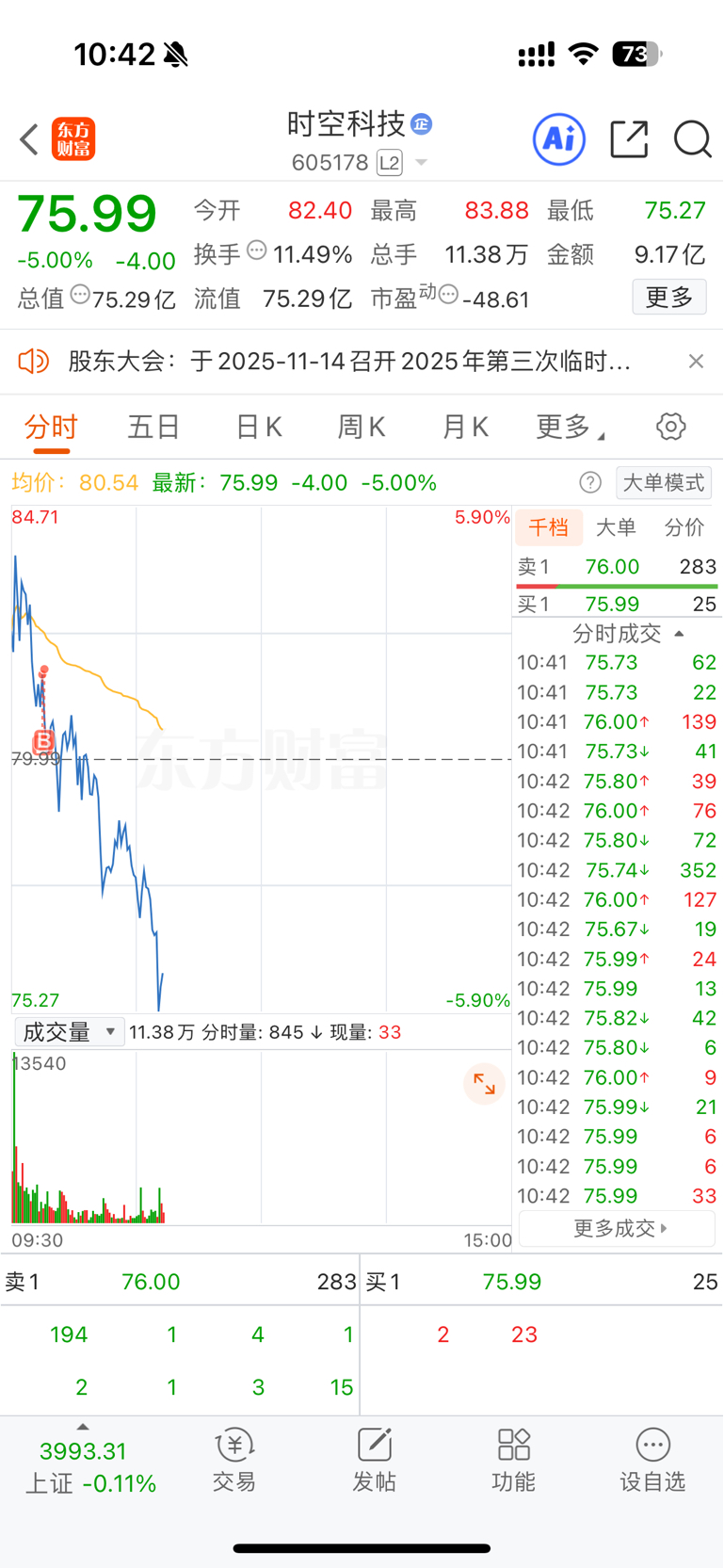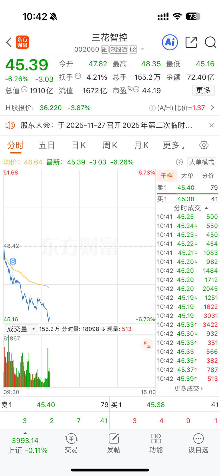 今天脑子一热,三花亏钱出来,一买进我脑子就是雯一下,就知道今天干了蠢事