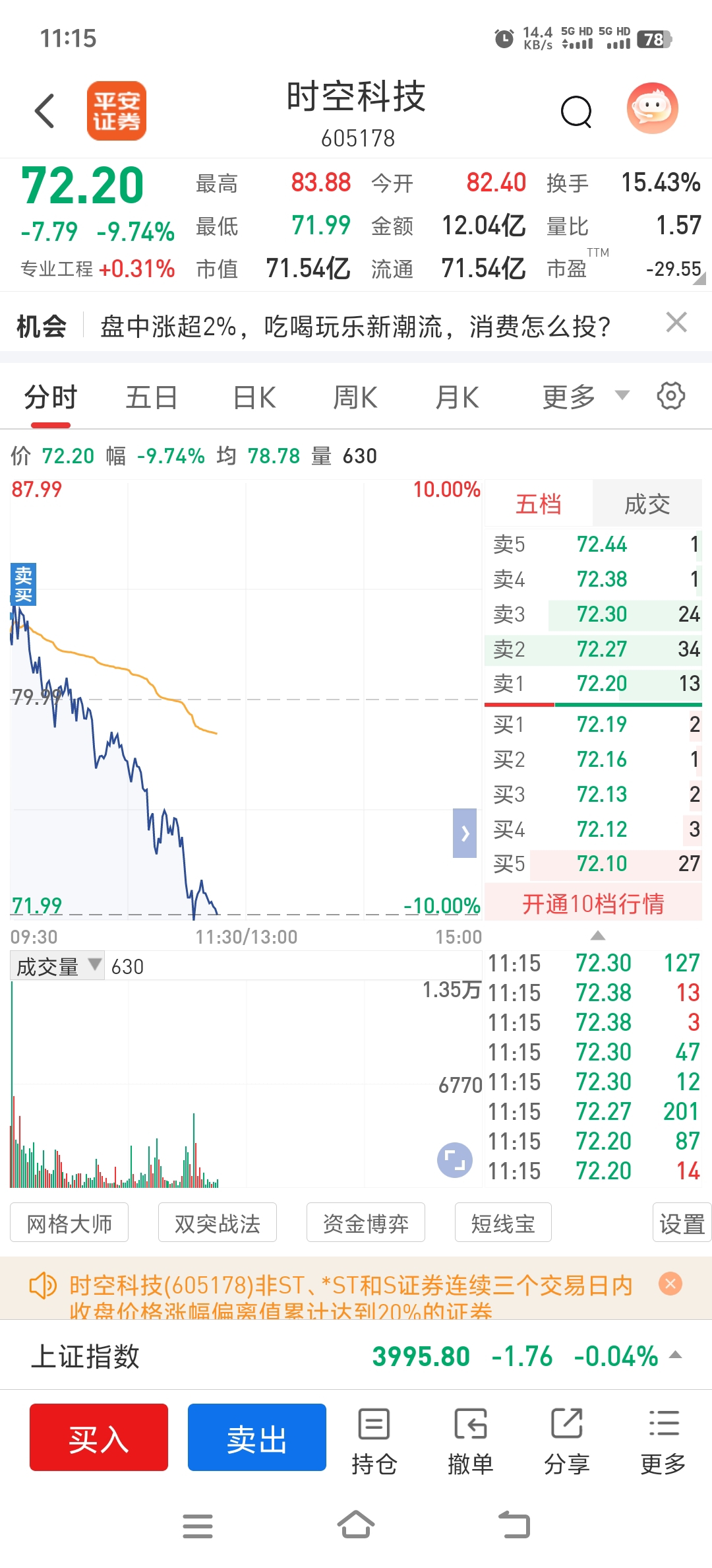 $时空科技(SH605178)$ 明天估计是一字了!吓出一身冷汗