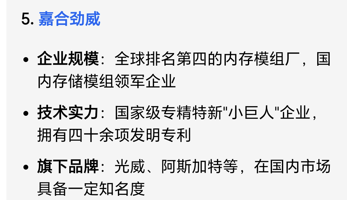在香农芯创上吃饱的机构主力哥哥也关注一下嘉合劲威,中间商赚差价固然好,全球内存模组第四的厂商也是潜力无限,仅次于三星,现代,镁光