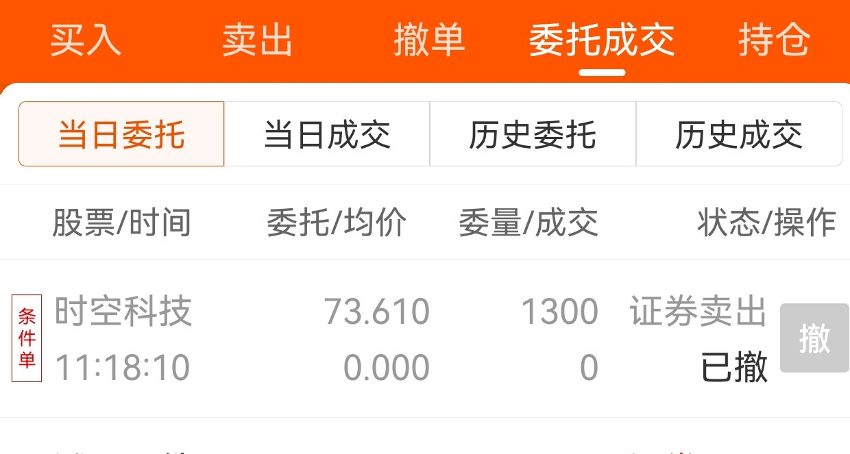 $时空科技(SH605178)$ 挂开板卖出条件单怎么会没有卖出去,是不是应该挂低二分钱