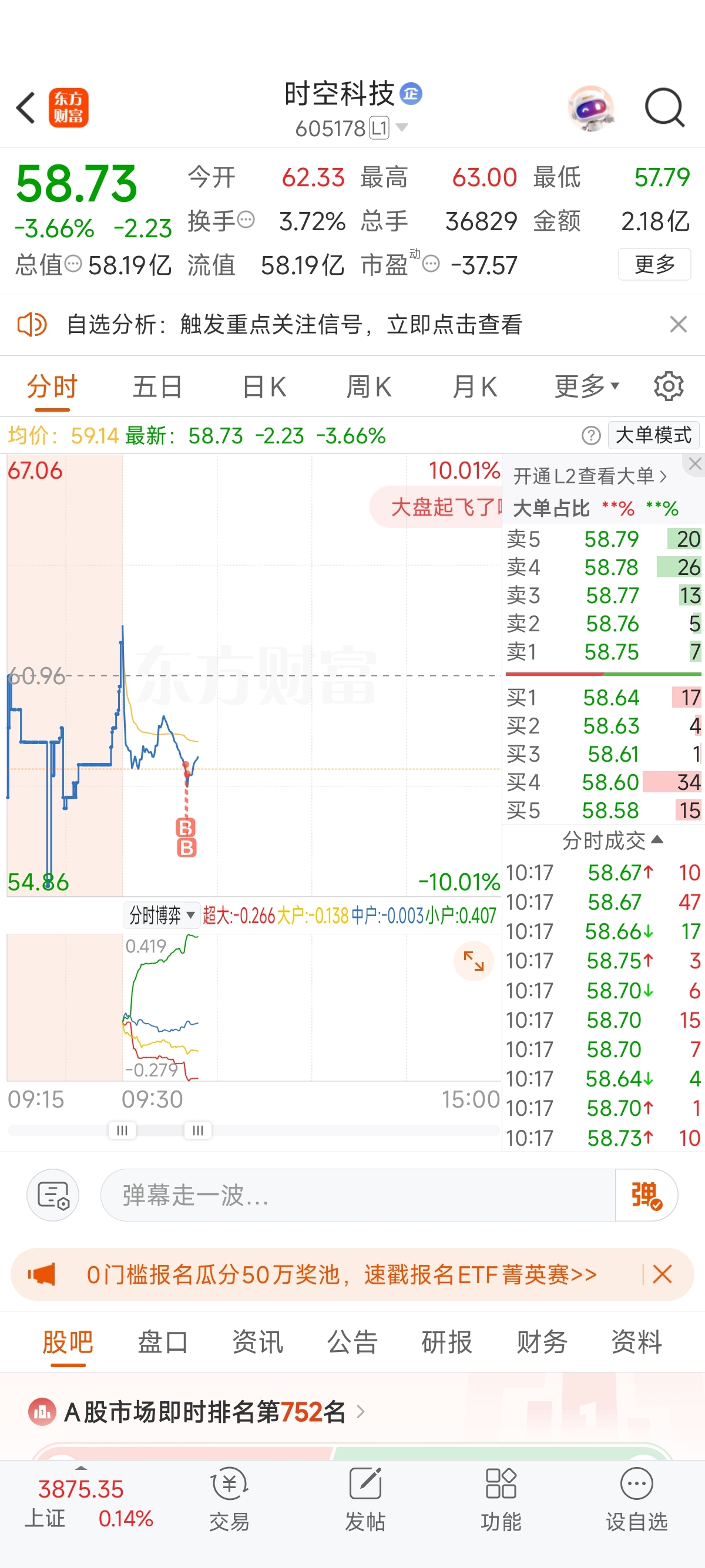 $时空科技(SH605178)$ 明天涨停,因为我进了。我最近运气好的可怕