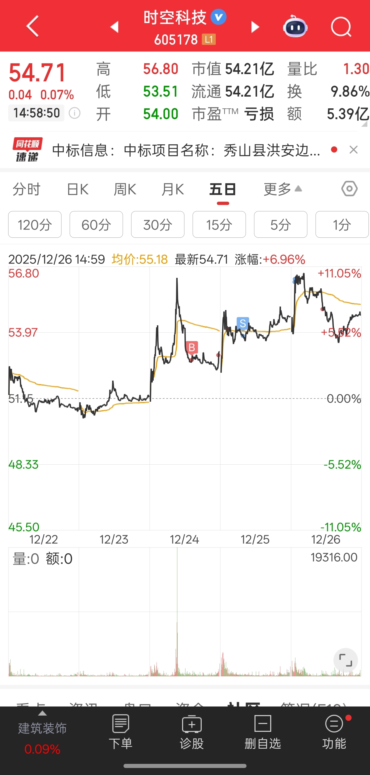 $时空科技(SH605178)$ 这周做t赚了六个点,周一高开继续做t