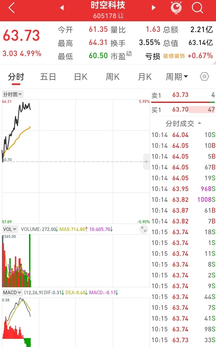 $时空科技(SH605178)$ 典型的小单拉,大单砸,反弹出货行情
