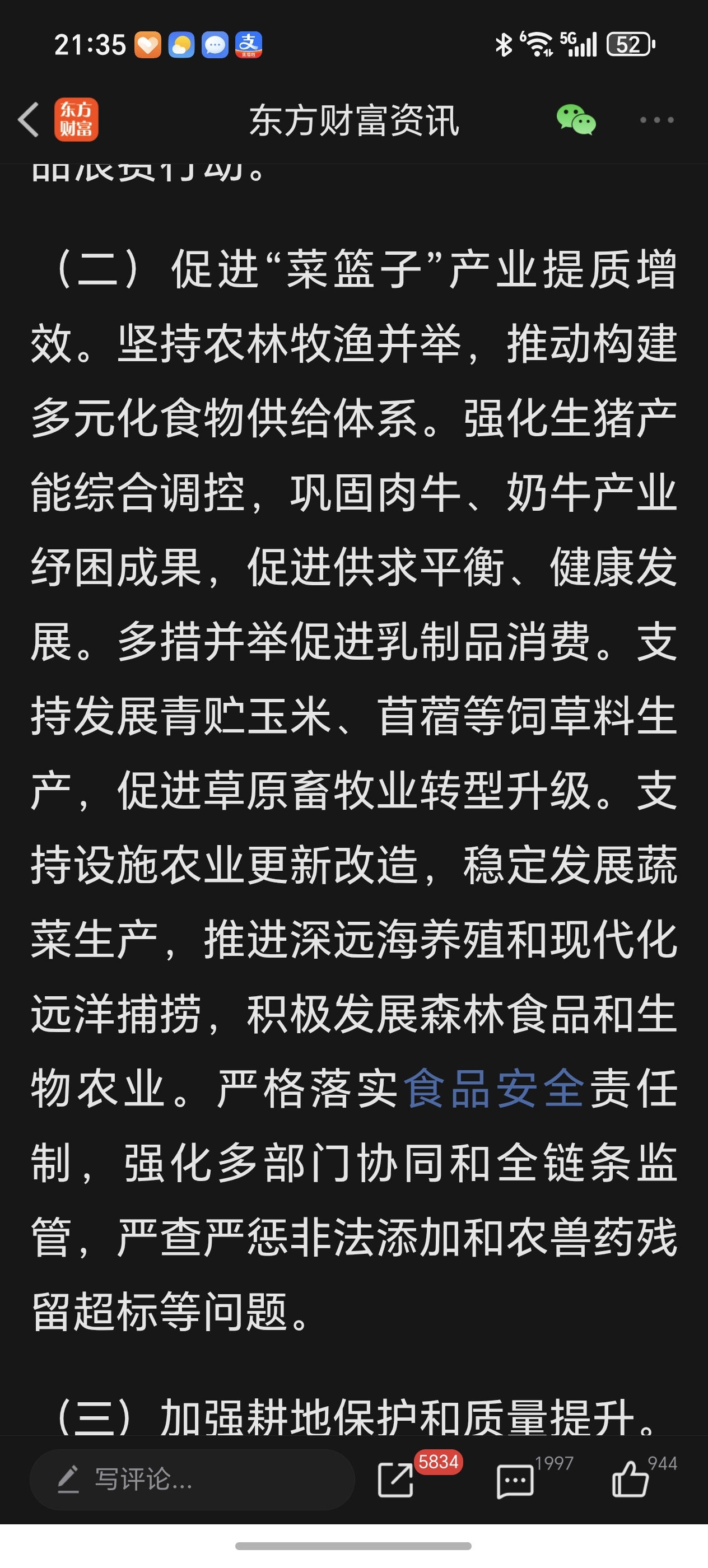 $一鸣食品(SH605179)$ 一号文件我帮你们看