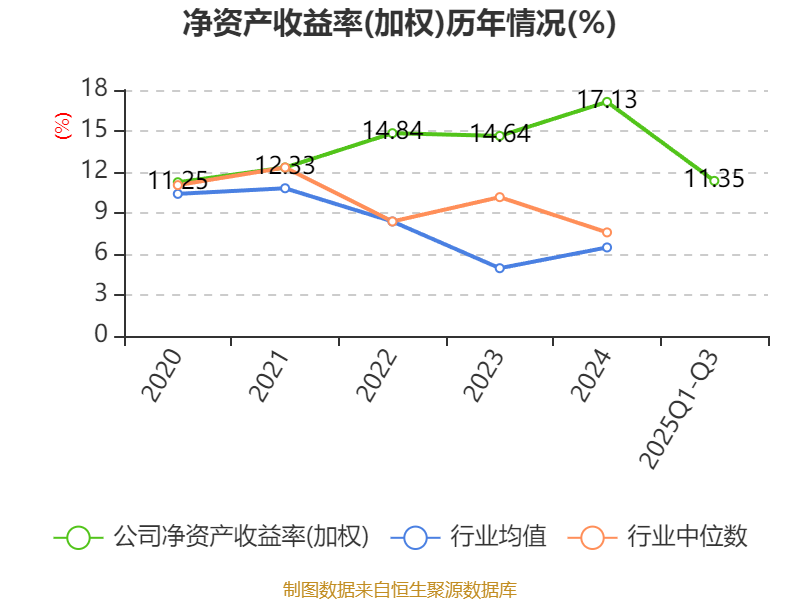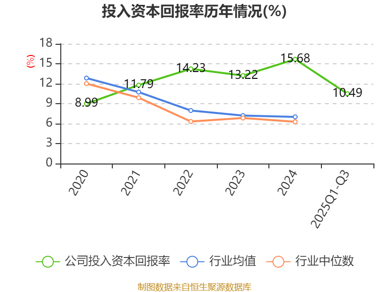 盈利能力方面, 2025年前三季度公司加权平均净资产收益率为11.35%,同比下降0.94个百分点。公司2025年前三季度投入资本回报率为10.49%,较上年同期下降0.73个百分点。