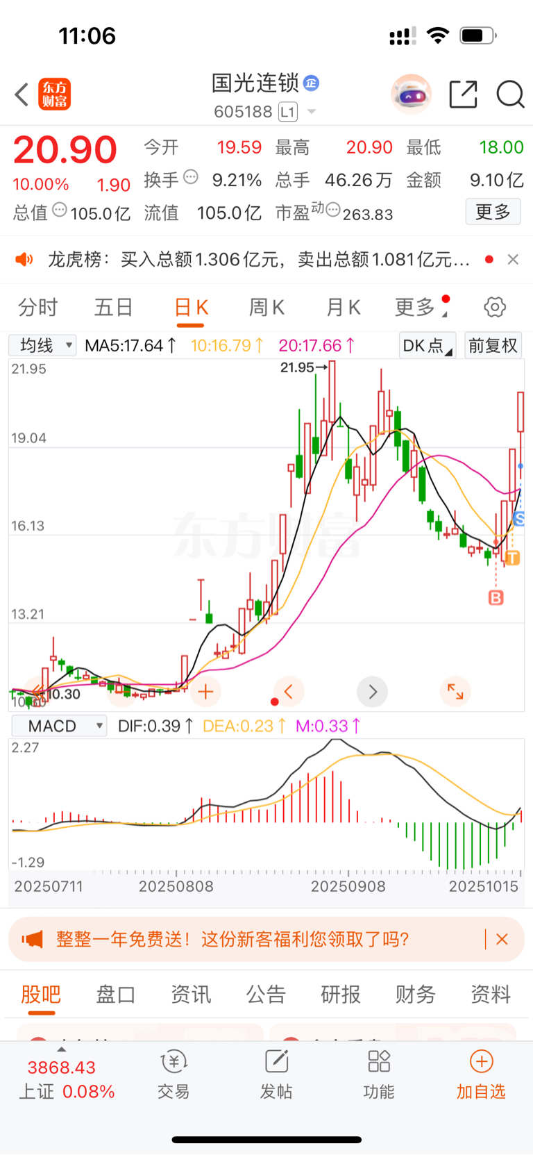 $国光连锁(SH605188)$ 还得练啊