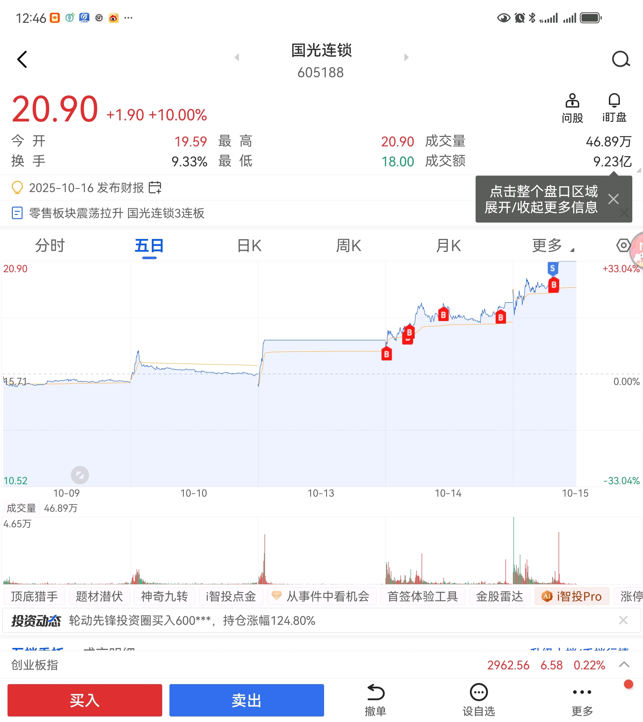 $国光连锁(SH605188)$ 今天卖了又加仓买回做个T,十倍牛股,不要乱动。