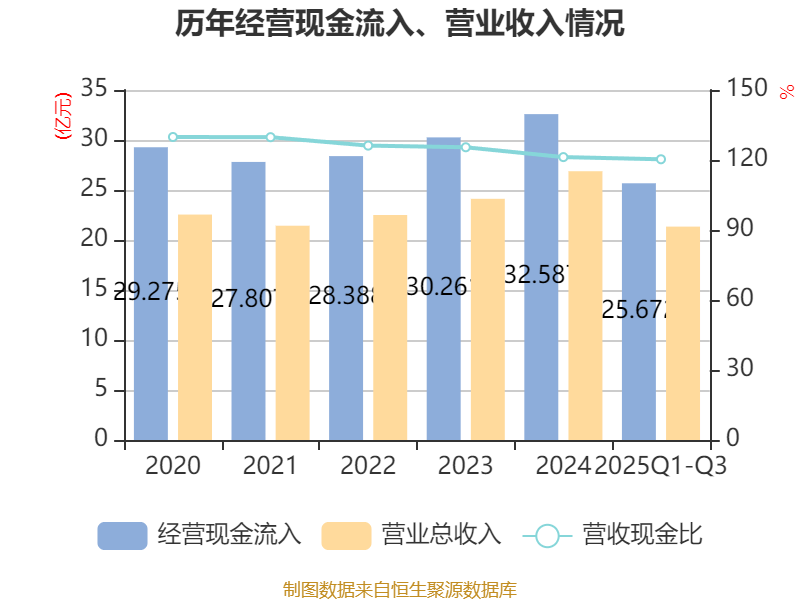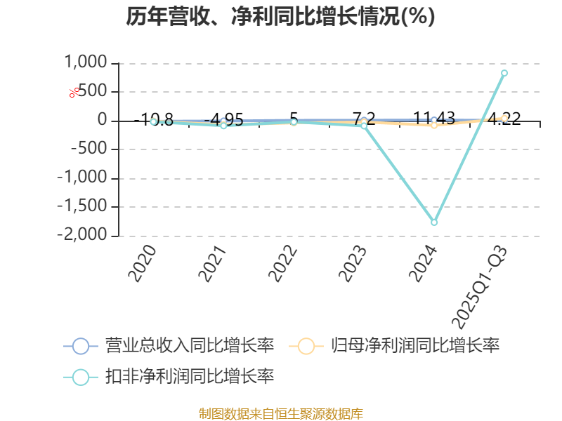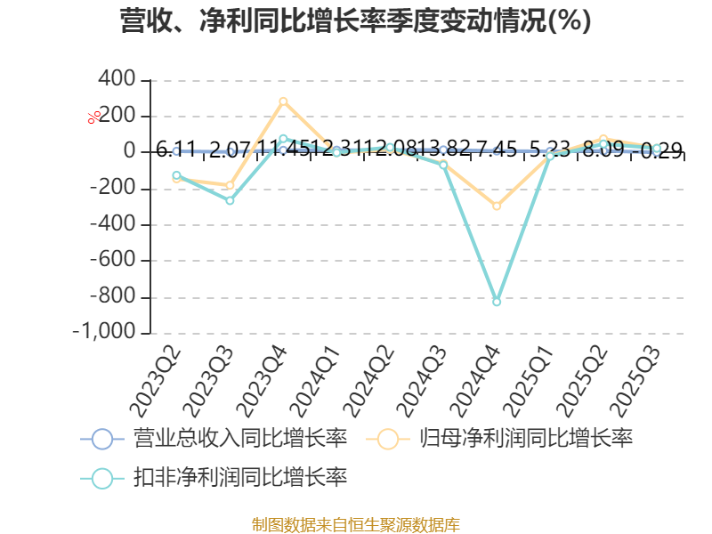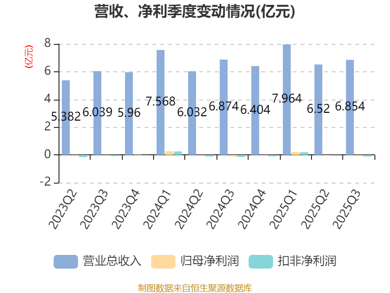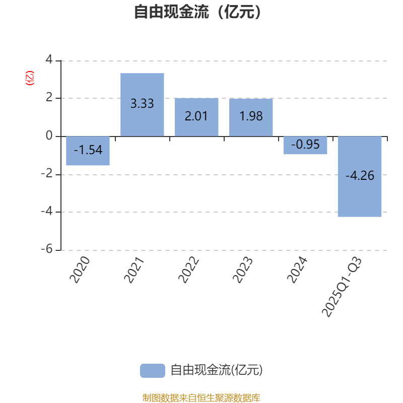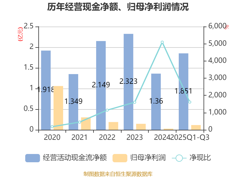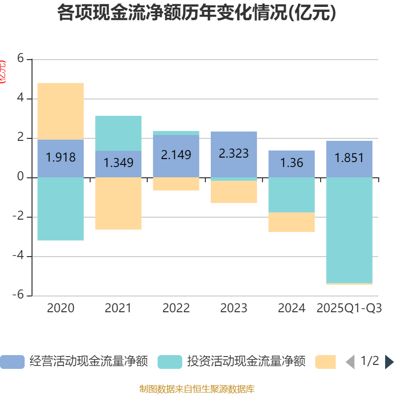 2025年前三季度,公司经营活动现金流净额为1.85亿元,同比增长2.1%;筹资活动现金流净额-660.96万元,同比增加6404.91万元;投资活动现金流净额-5.39亿元,上年同期为-6.08亿元。