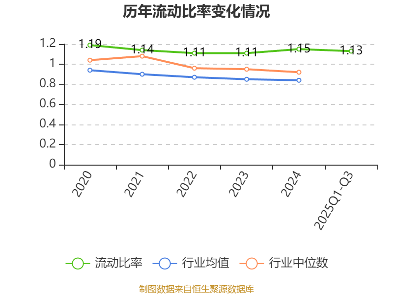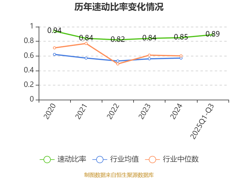 2025年前三季度,公司流动比率为1.13,速动比率为0.89。