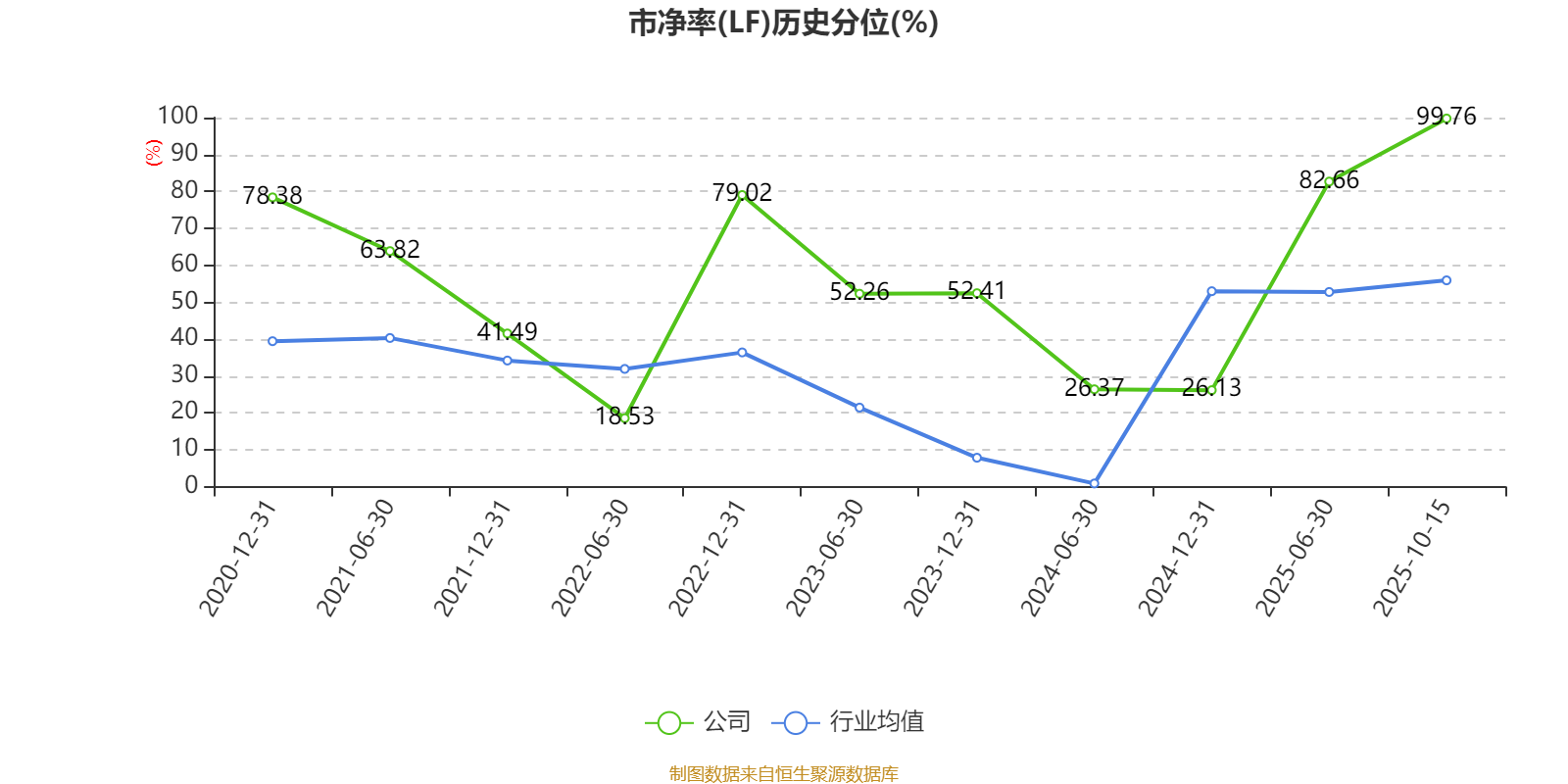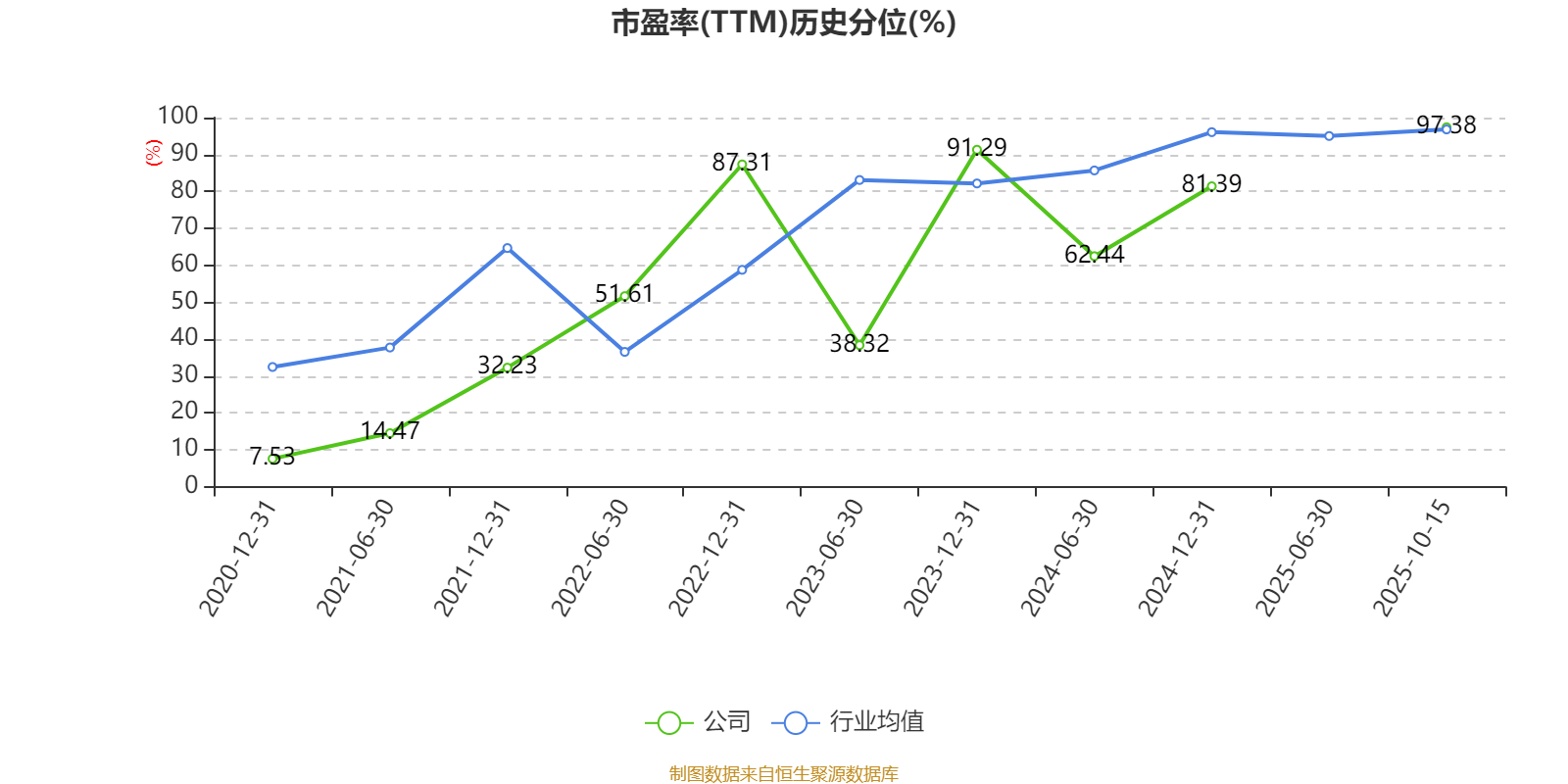 市盈率、市净率为负时,不显示当期分位数,会导致折线图中断。