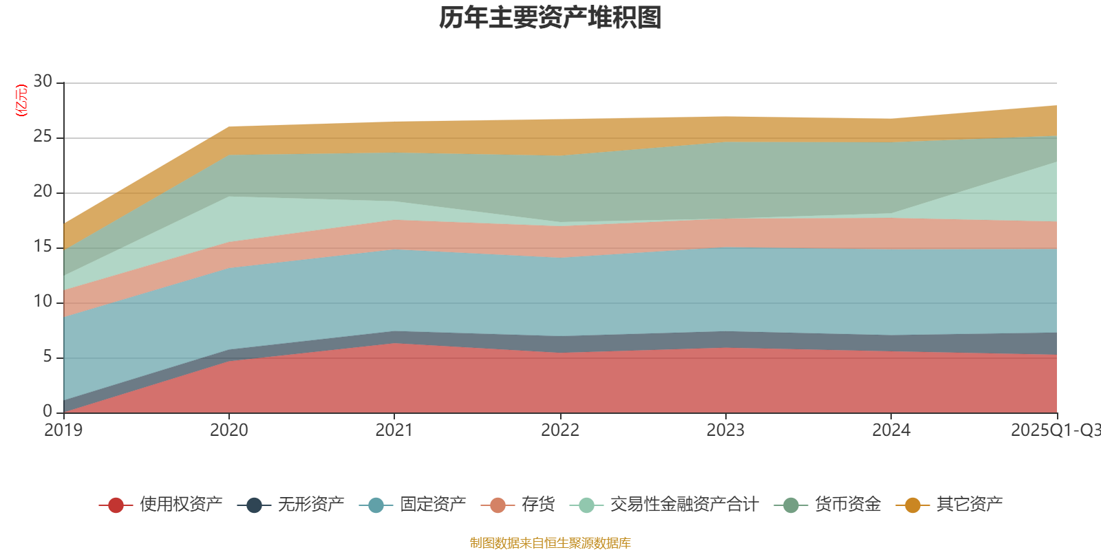 资产重大变化方面,截至2025年三季度末,公司交易性金融资产合计较上年末增加1172.61%,占公司总资产比重上升17.89个百分点;货币资金较上年末减少63.58%,占公司总资产比重下降15.74个百分点;在建工程合计较上年末增加430.52%,占公司总资产比重上升2.98个百分点;固定资产较上年末减少2.72%,占公司总资产比重下降2.04个百分点。