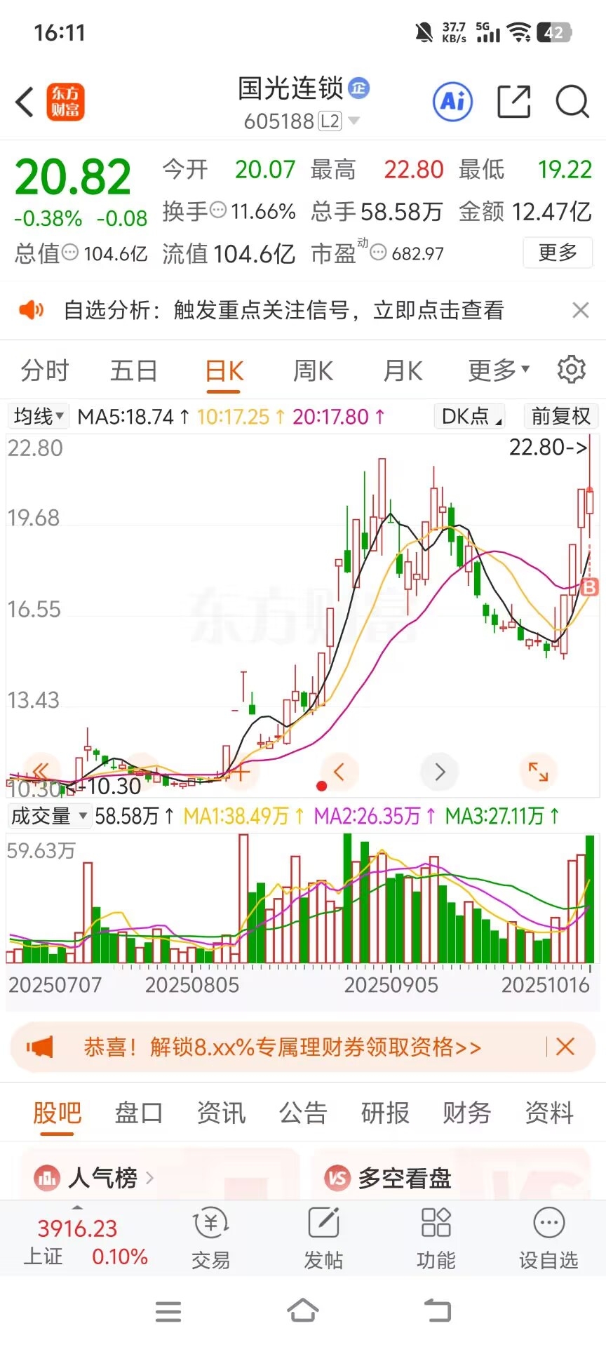 $国光连锁(SH605188)$ 只要有符合的一定会出手,只不过最近都不算太多,买点来说要么一开始要么尾盘,切勿盘中追高,把模式越精确化,越容易赚钱!!
