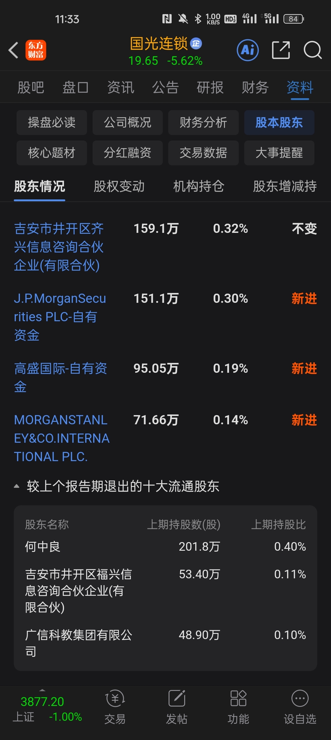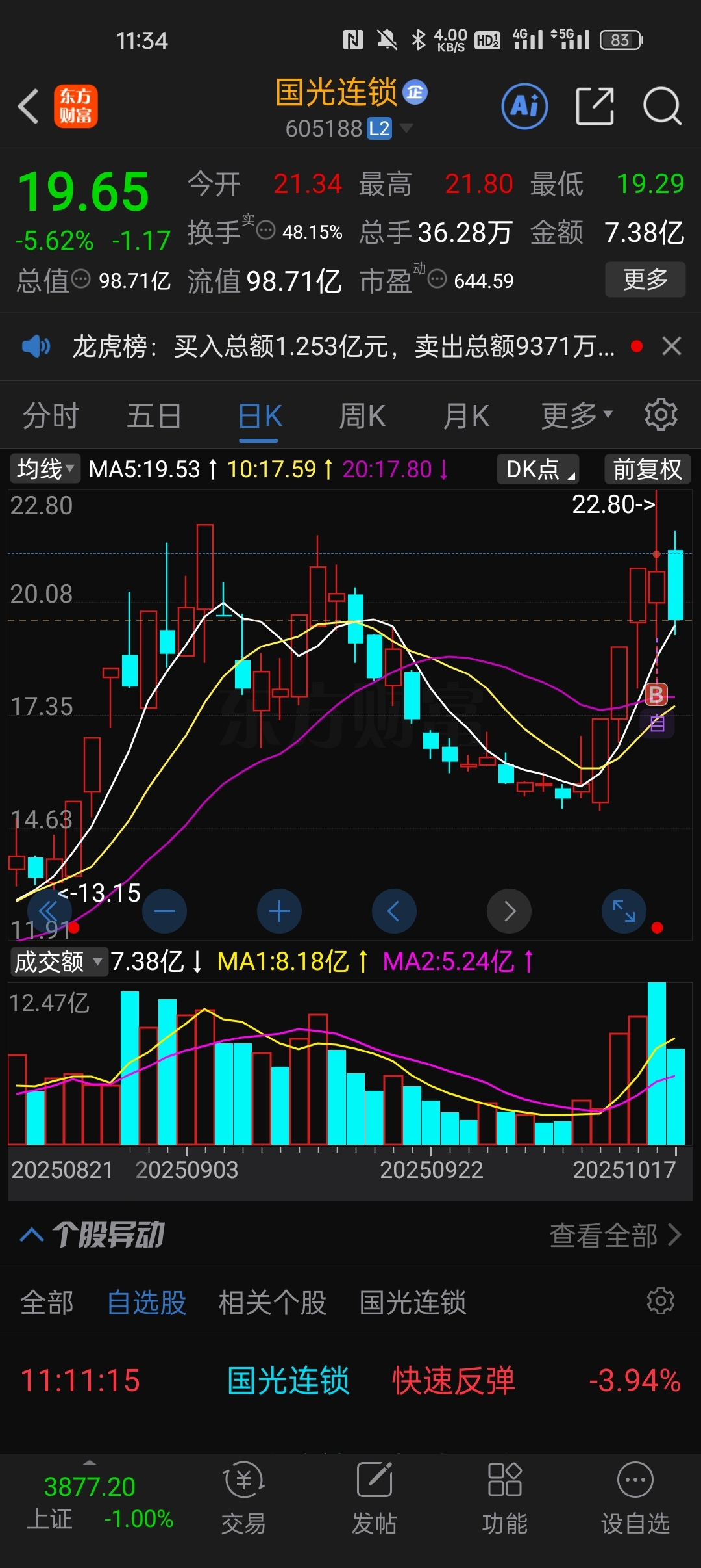 外资9月30号进场,进场后连着3连板,这几天。今天走势已经预示结束了,接下来就是盘整,我红盘没走,是因为看好,没想到砸下来后,越走越低,我也放弃抵抗了,也不想补仓了,昨天就买了几手,10日线再补仓,等你。
