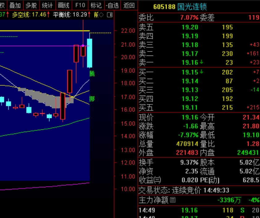 上证指数下跌60个点,国光连锁捡点便宜19.50元附近安排上。