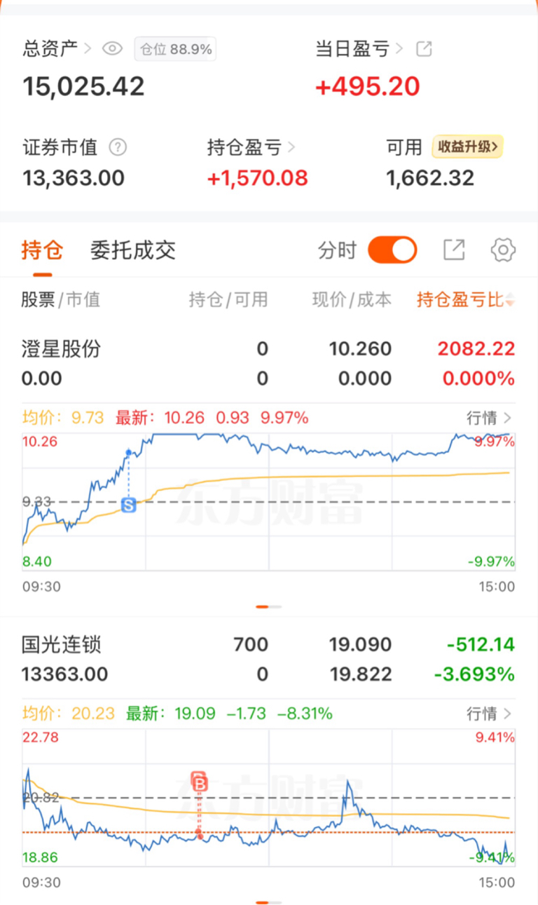 $国光连锁(SH605188)$ 小羊实盘:大家好自我介绍一下,十年超短选手,挑战实盘记录绝对真实,希望各位可以关注,今天开始我将今天第一天分享复盘,下周开始每天会更新,做了什么都会更新出来.昨天介入了澄星股份,早盘拉高七个点止盈,低吸了国光连锁,不过尾盘受到大盘影响,尾盘被砸了,没追高的其实都还好,下周这个票开盘还会有修复预期个人意见,仅供参考.