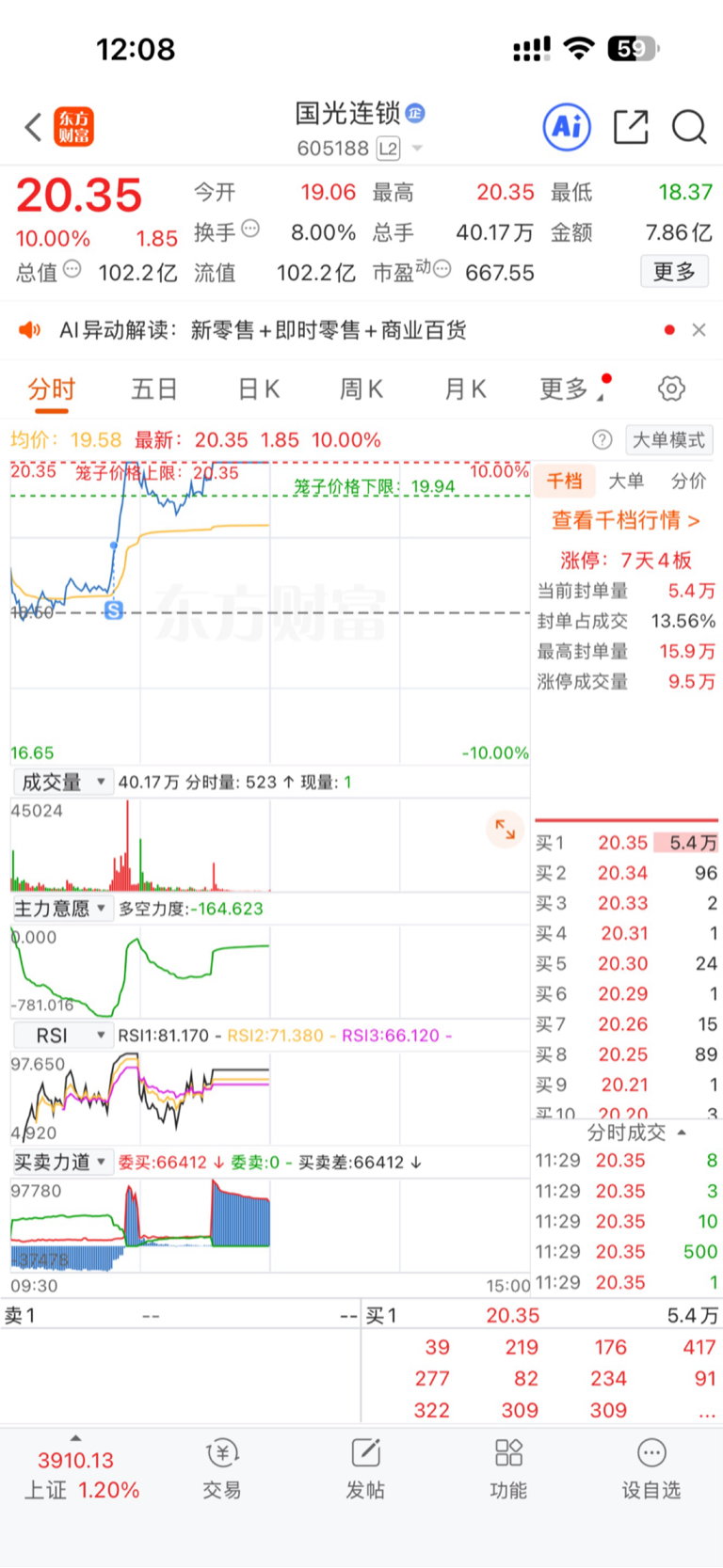 $国光连锁(SH605188)$ 这两天操作不是很好,昨天也是两支涨停股卖在了黎明前,今天也这样