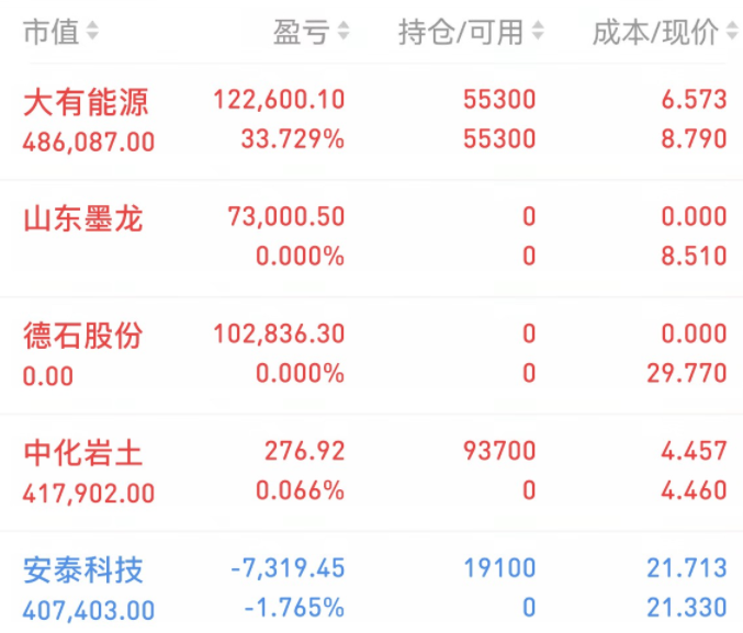 你们知道我说的是谁?没错,大有能源,又是想卖没法卖的一天,中途炸板都没离开过板位,怎么卖?有笼头在手,当然小弟看不上眼了,所以,昨天陪大家低吸的山东墨龙,板附近分批清掉了。跟上老秦的朋友至少是15%的大肉吧,这单。