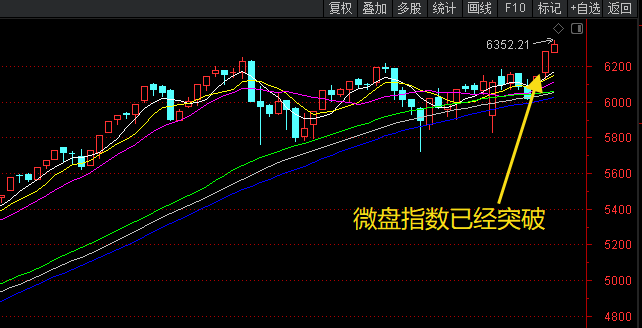 早评里提到微盘指数走好了,这个大家要重视一下,因为微盘是最先调整的也是几个月以来最弱的指数,但先调的先起,昨天突破新高了,今天依然很强,涨了0.6%。说明未来一段时间,微盘是引领者,而沪深指数很可能走跷跷板弱势。