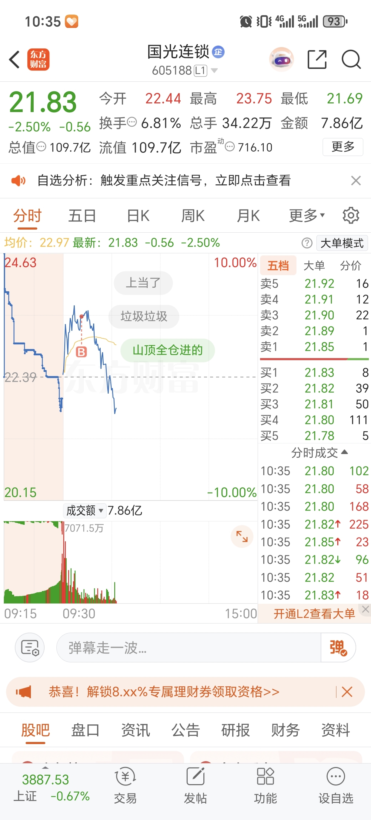 $国光连锁(SH605188)$ 对不起,被我买跌了