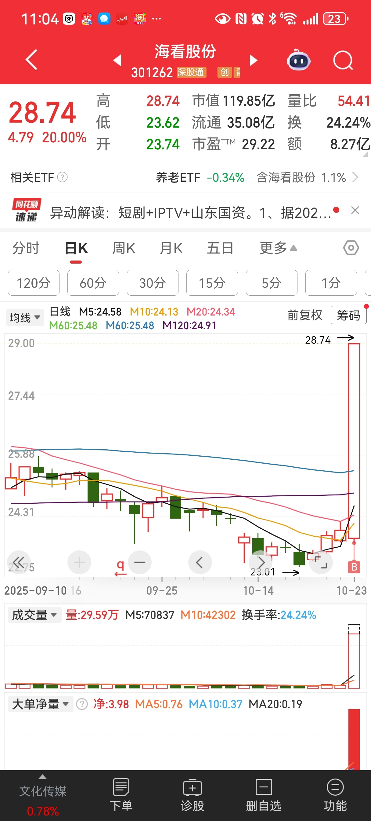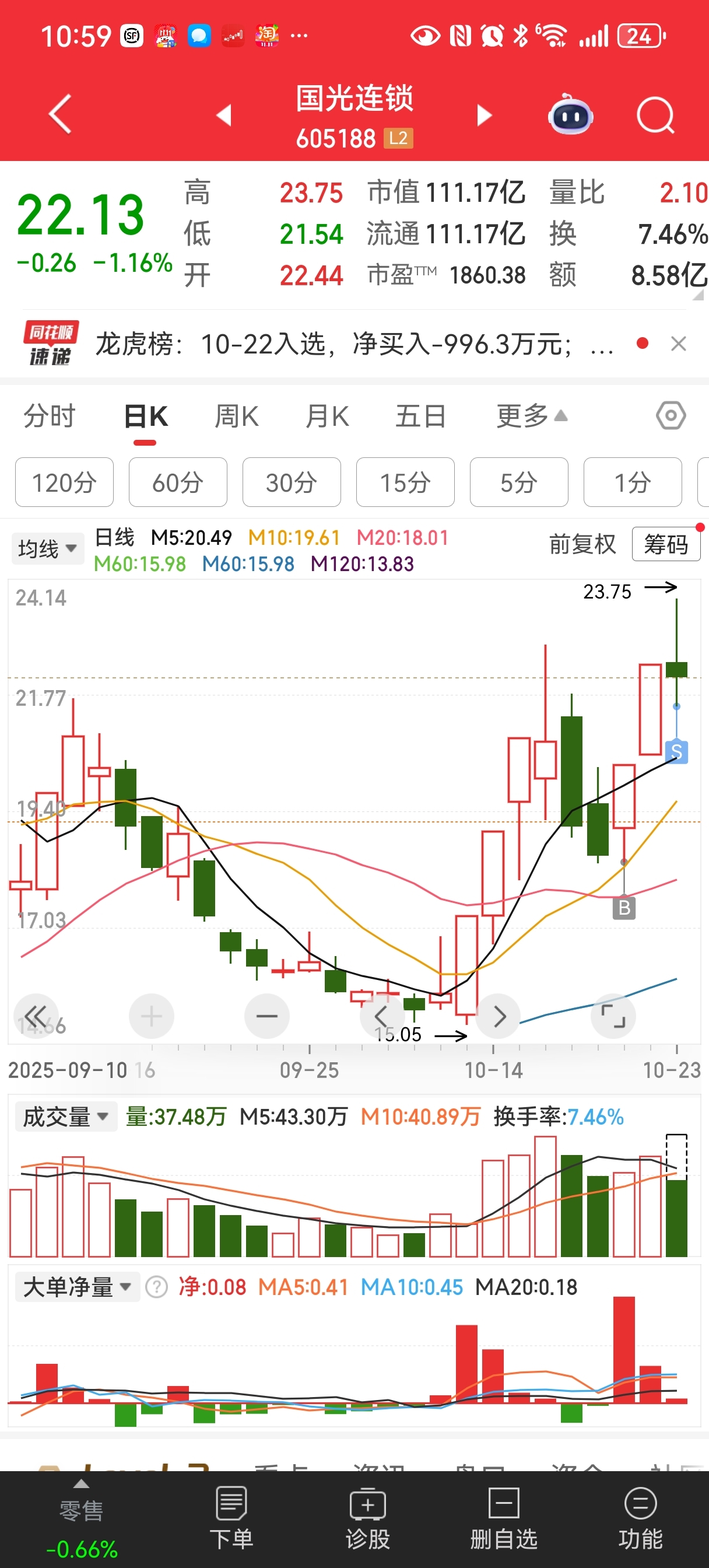 明天早盘继续杀回国光连锁,打个价格差!海看股份明天早盘有溢价!