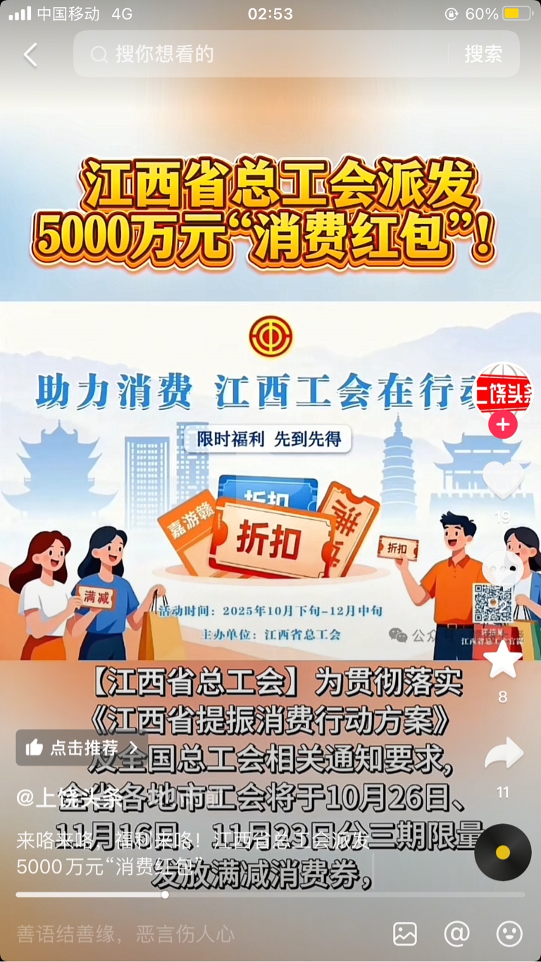 $国光连锁(SH605188)$ 江西26号开始发放5000万消费券提振消费。这算利好吧。
