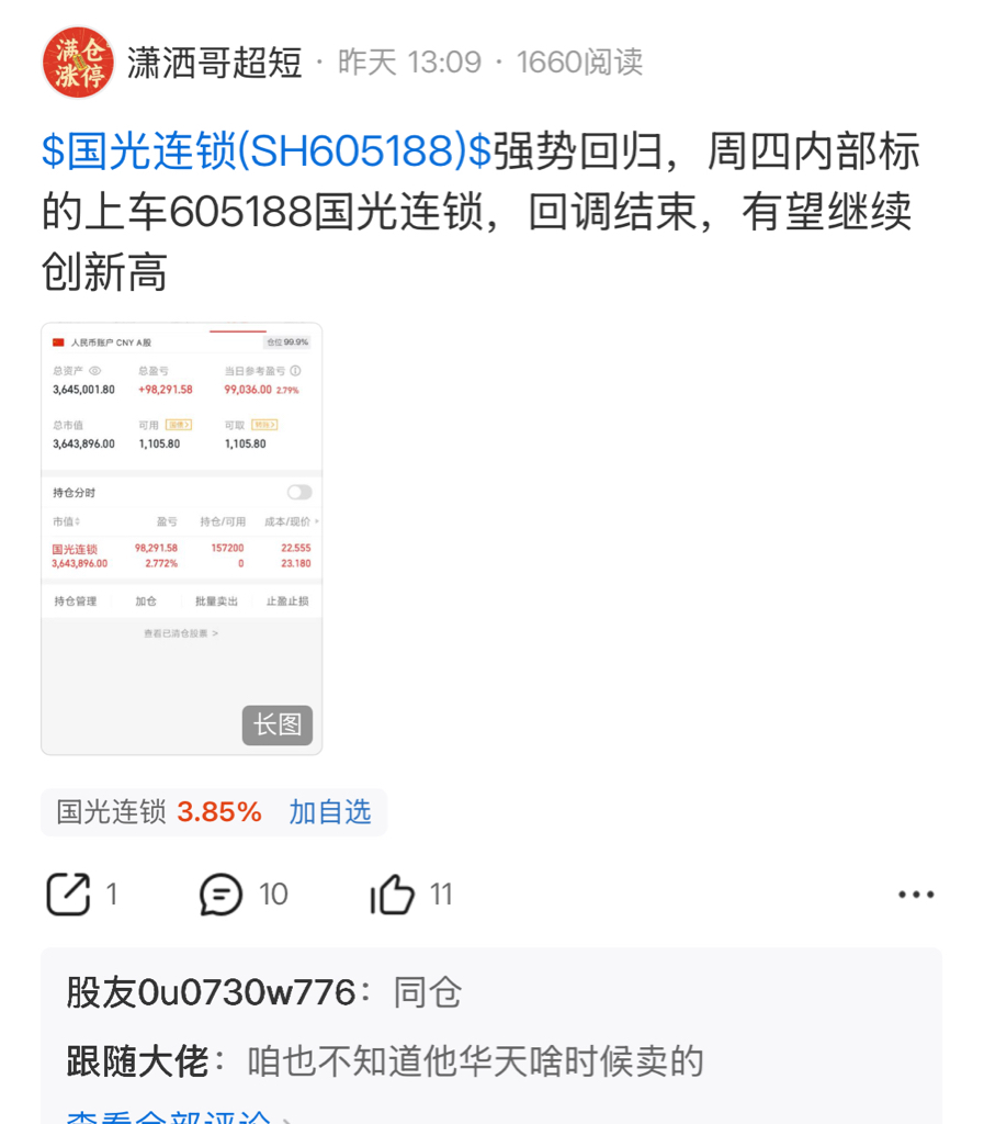 $国光连锁(SH605188)$ 有图有真相,国光连锁开始起飞,大家记得逢高获利出局