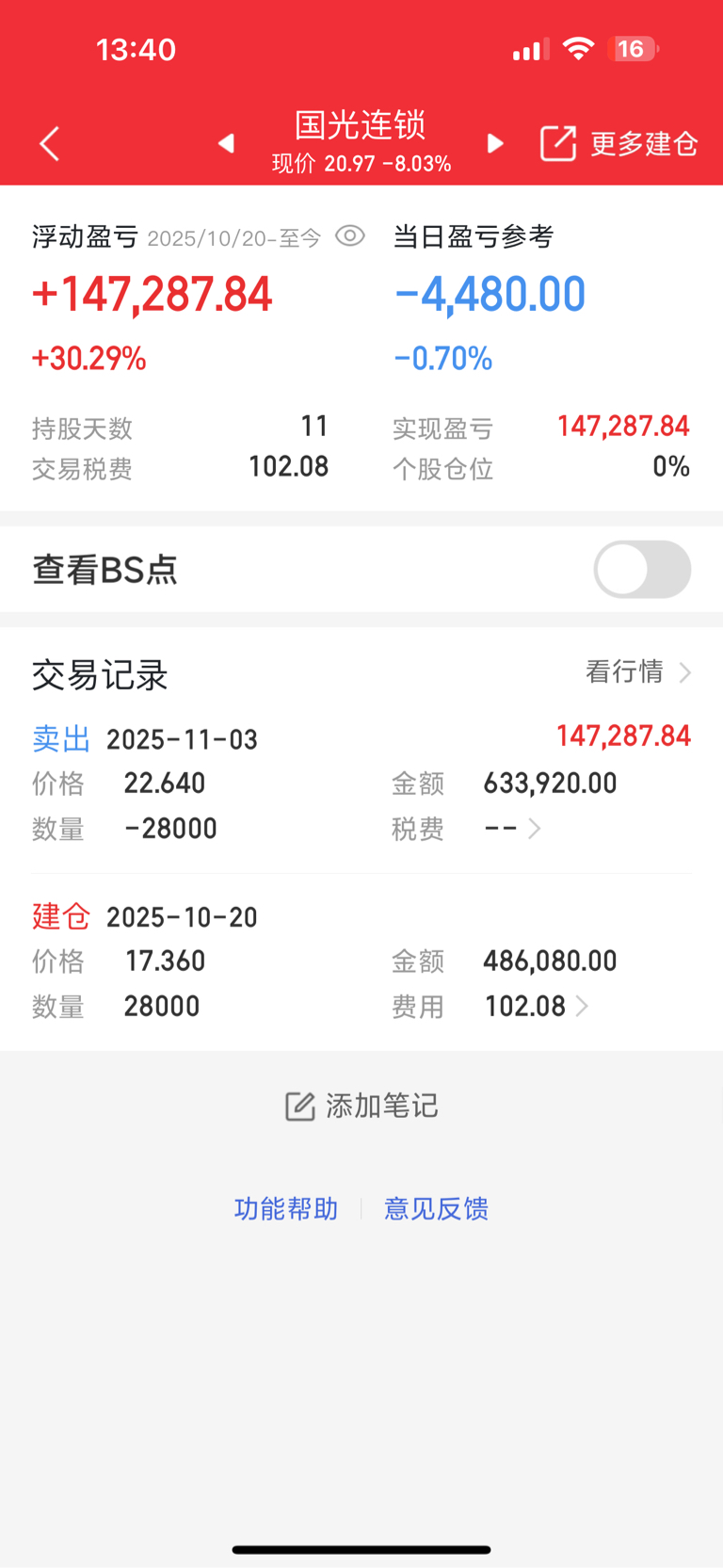 今天早盘操作挺顺的!把国光连锁给卖了,短线吃了三十个点,感觉美滋滋。腾出资金转头