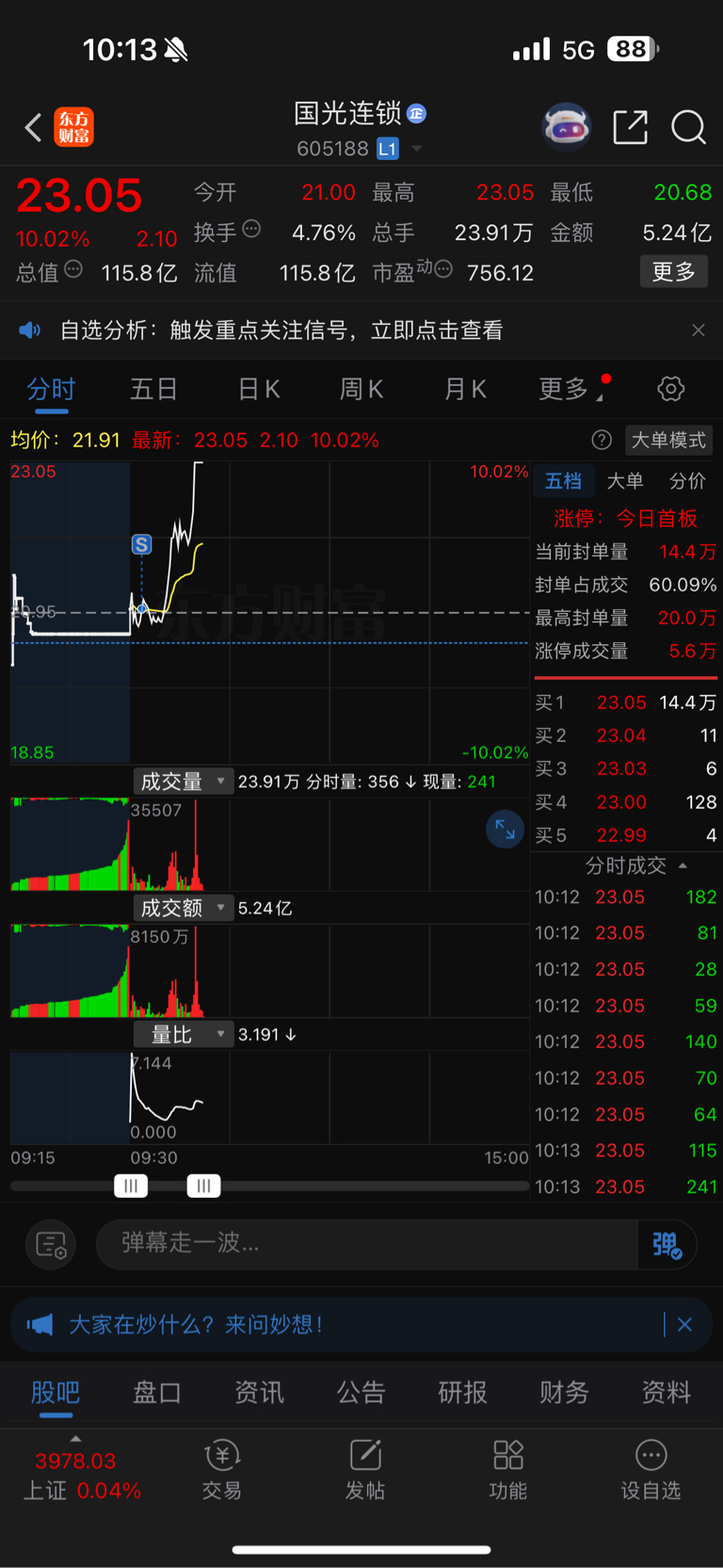 $国光连锁(SH605188)$ 哈哈哈哈哈哈哈哈哈哈,我疯了