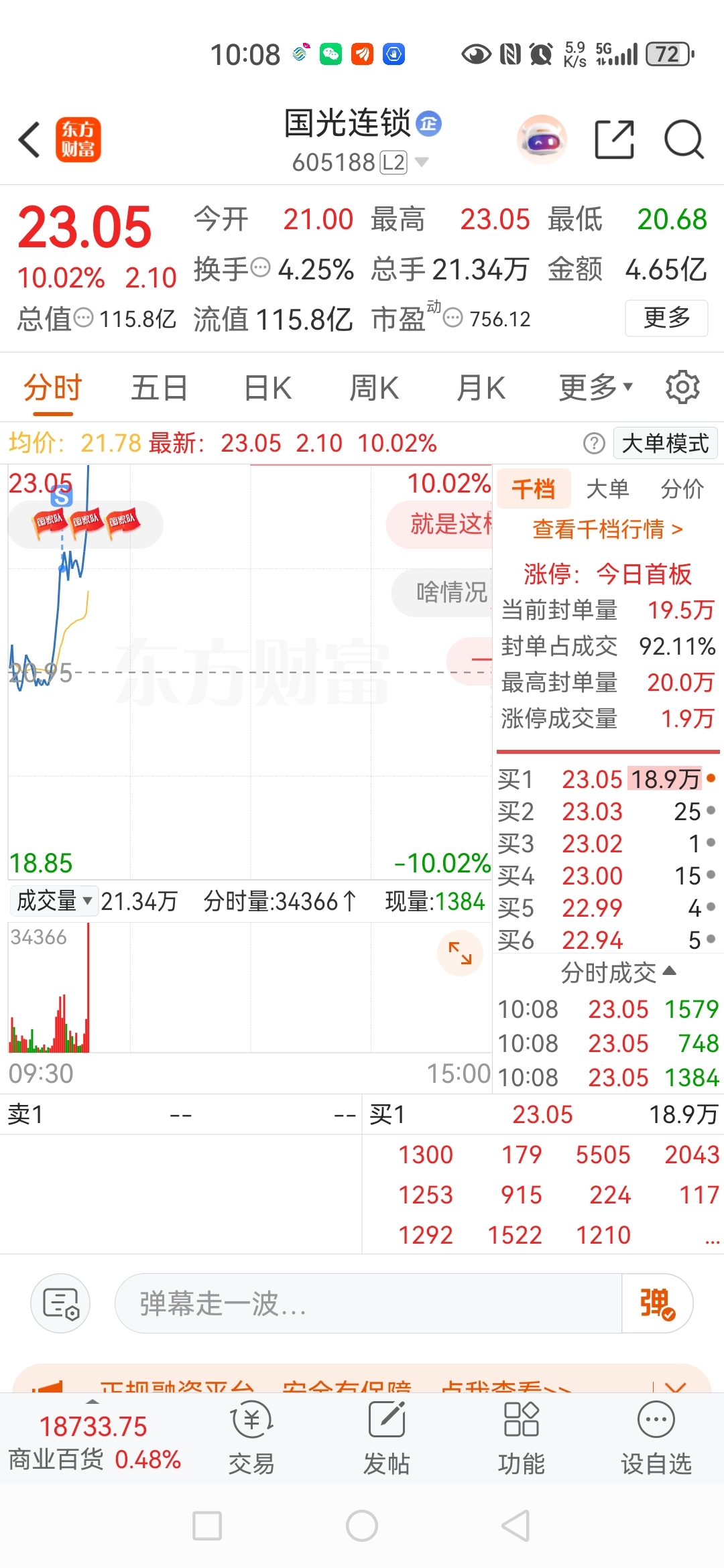 $国光连锁(SH605188)$ 看到股吧所有人都不看好,昨天尾盘进了点,虽然只有5个点,也知足了。