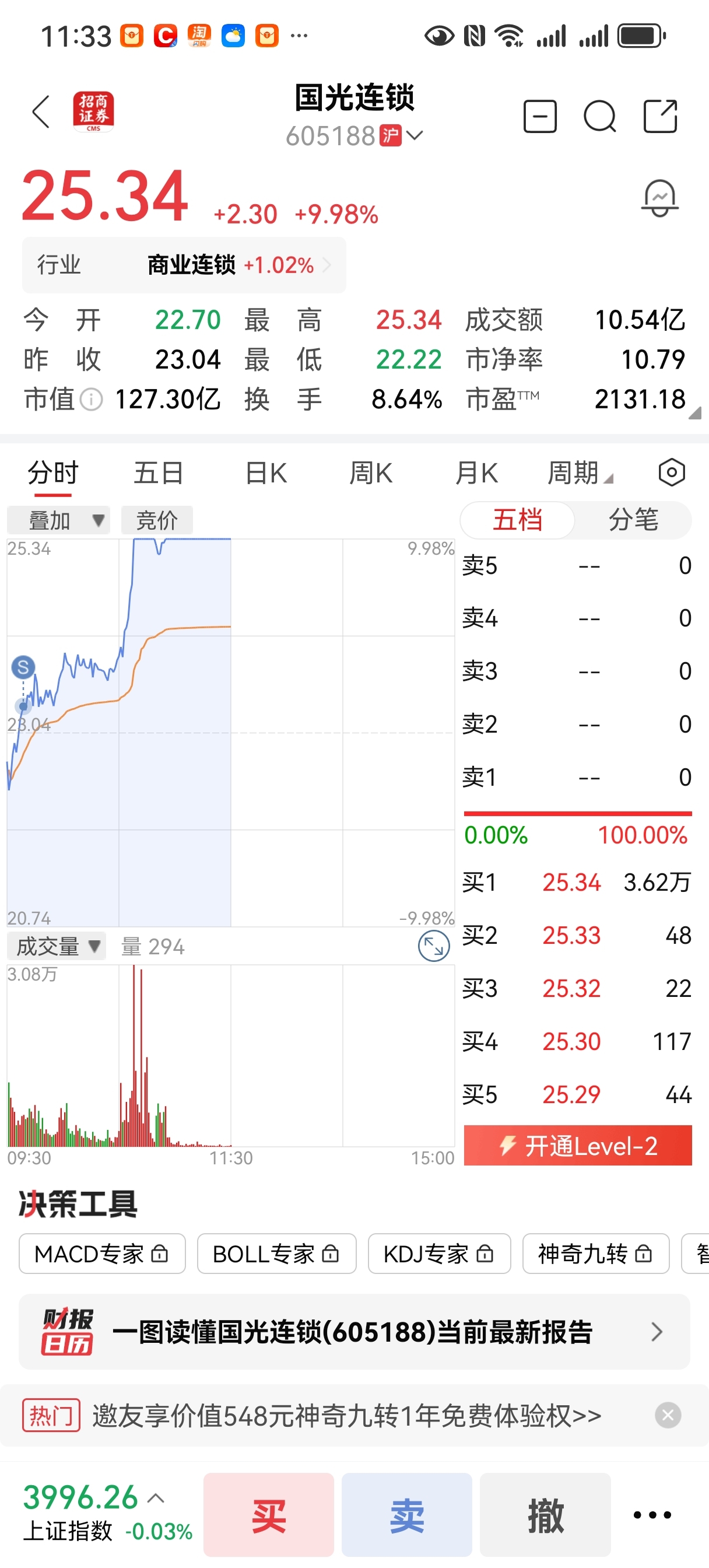 $国光连锁(SH605188)$ 这几天三进三出,被你前几天每次的冲高回落搞怕了,然后今天成功卖飞,真的无语。