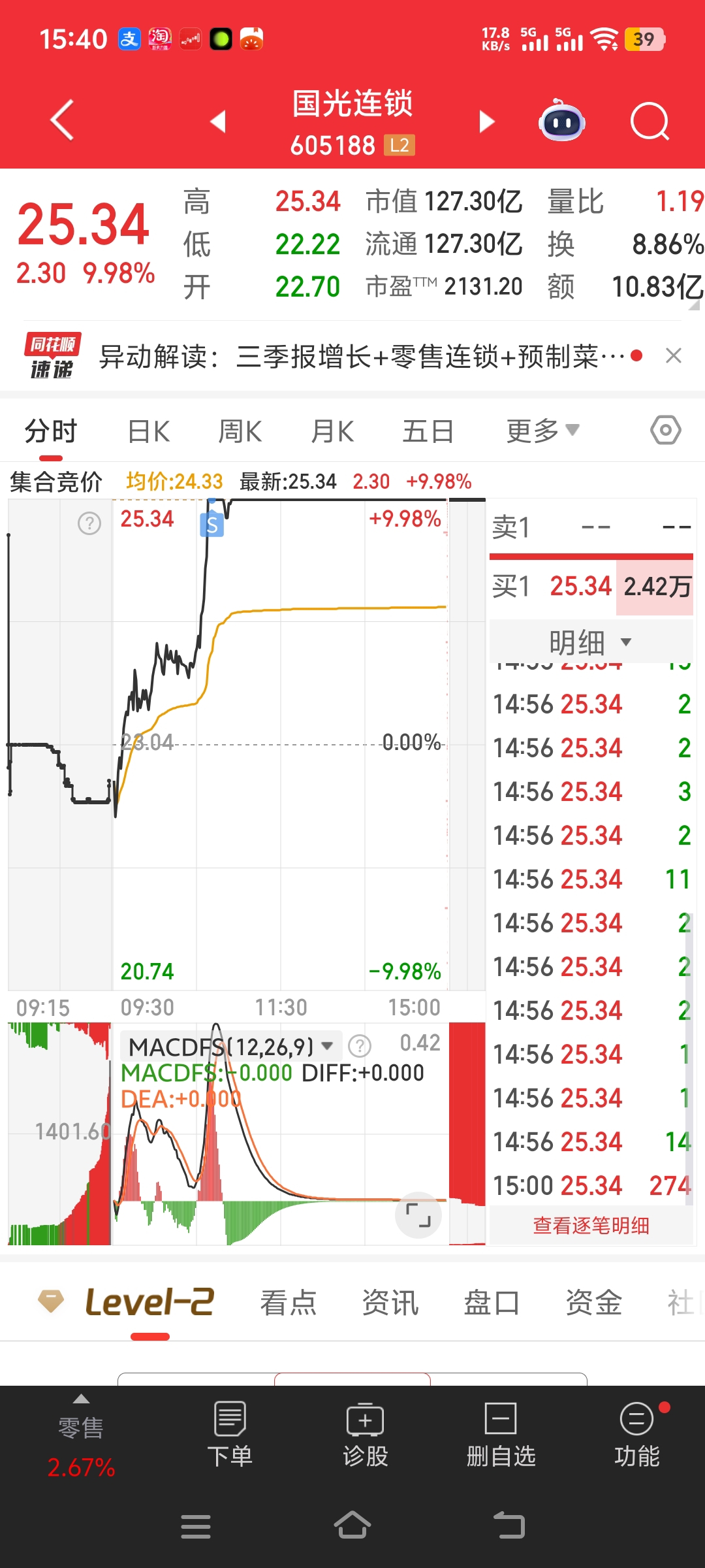 郁闷的很,18元进去的,现在30多个点出掉了,感觉至少能涨到35,今天被主力开板洗走了32手,唉,没机会了。