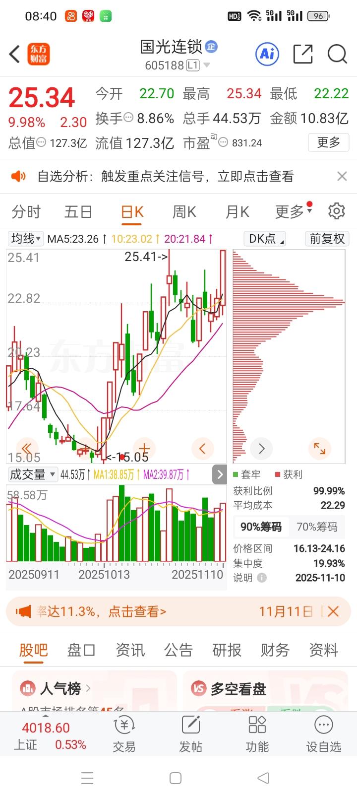 国光连锁。50多家大型商超。旺季来了。最佳启动点。建议重仓买入。高抛低吸。波段操