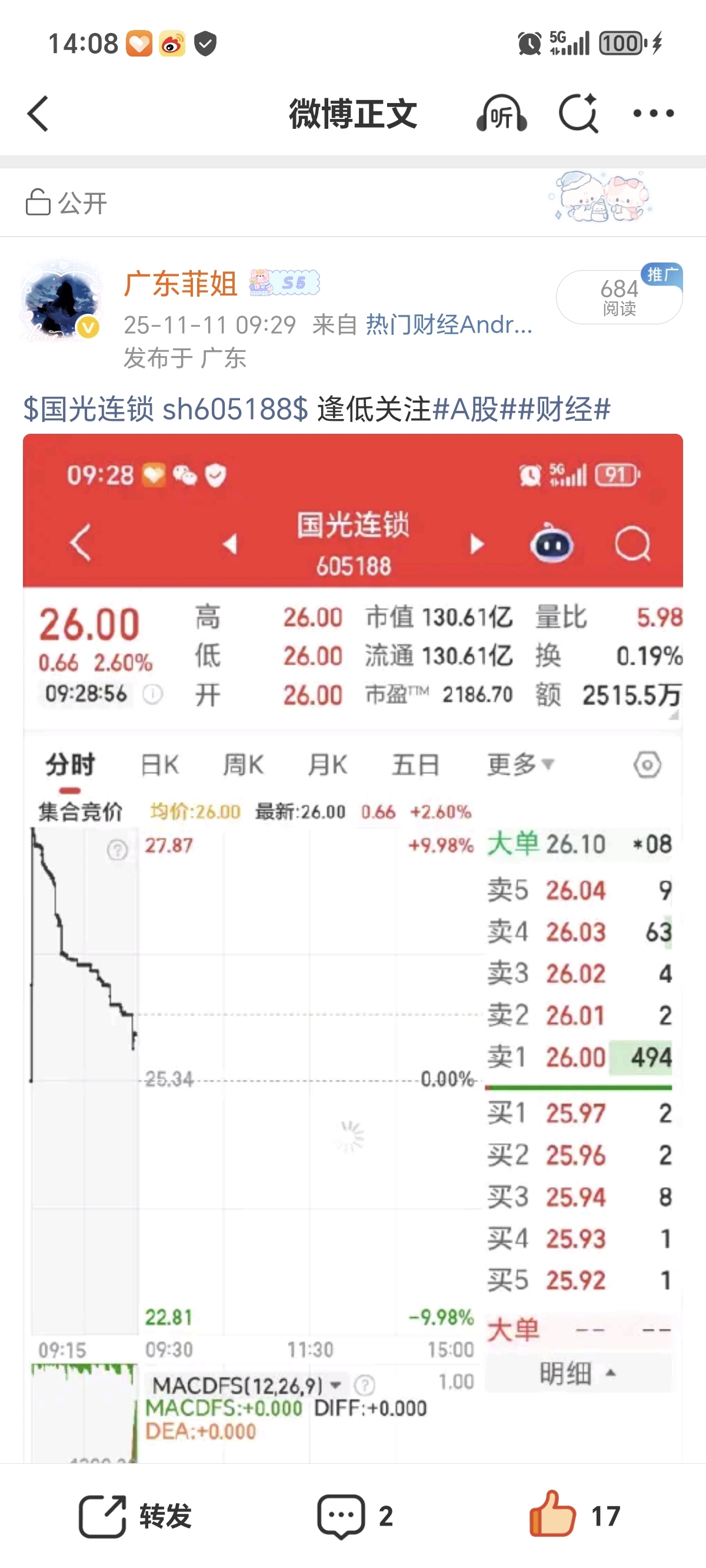 国光连锁香不香?$国光连锁(SH605188)$ 点赞评论888继续