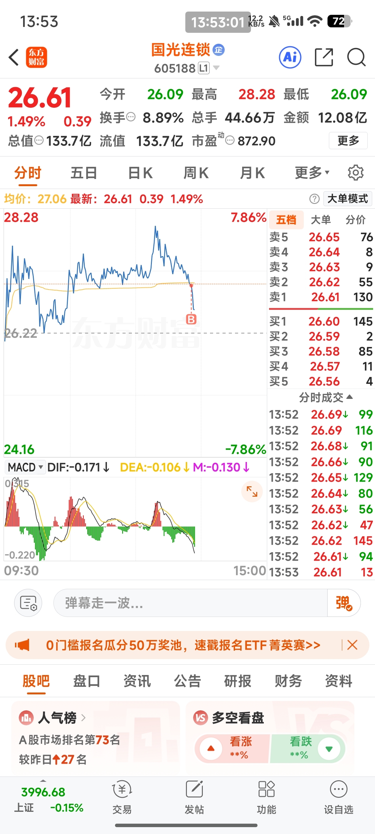 $国光连锁(SH605188)$ 对不住大家 ,被我买崩了