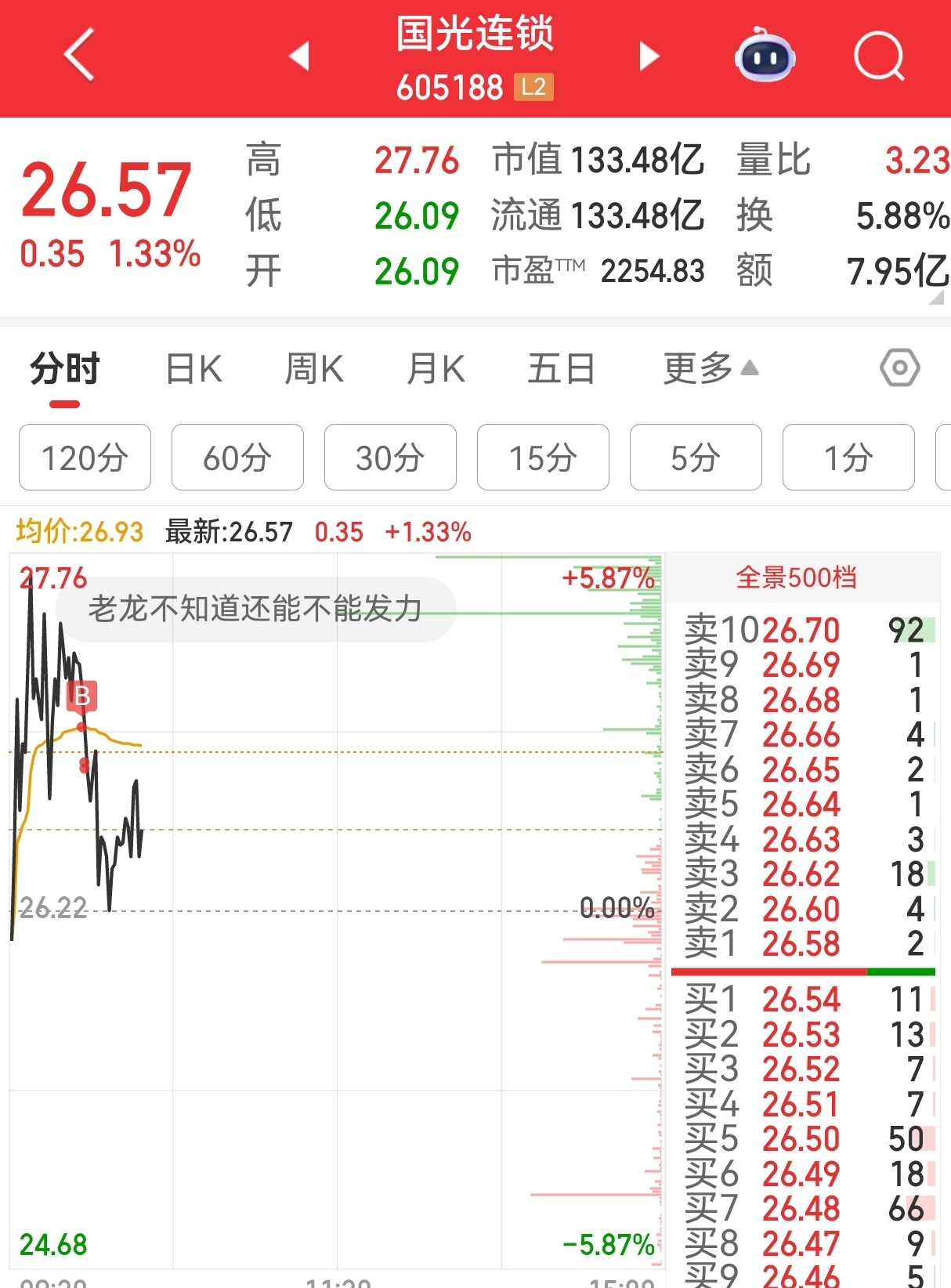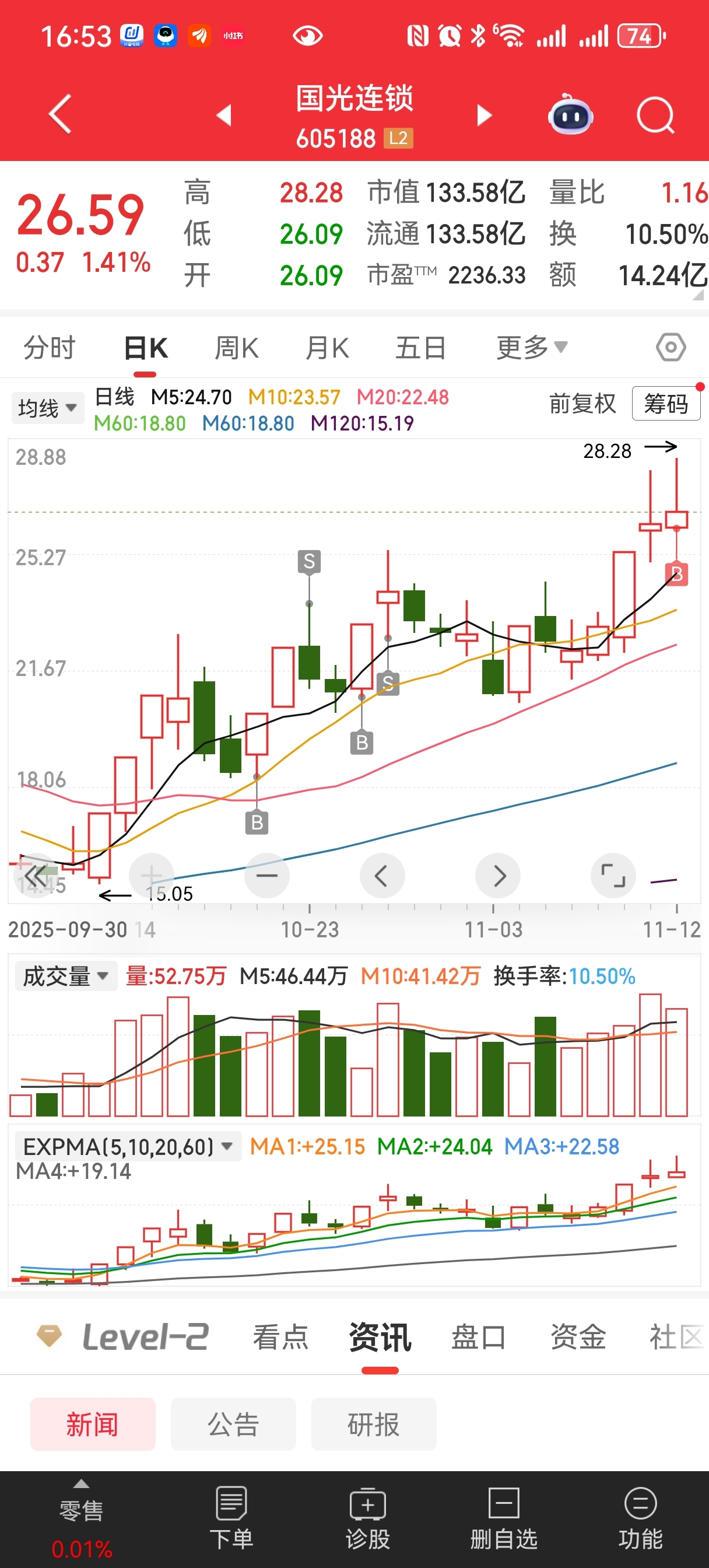 国光连锁远不到顶,28.28的对子更不会是顶,本蛋哥三进三出国光连锁,不会亏钱的