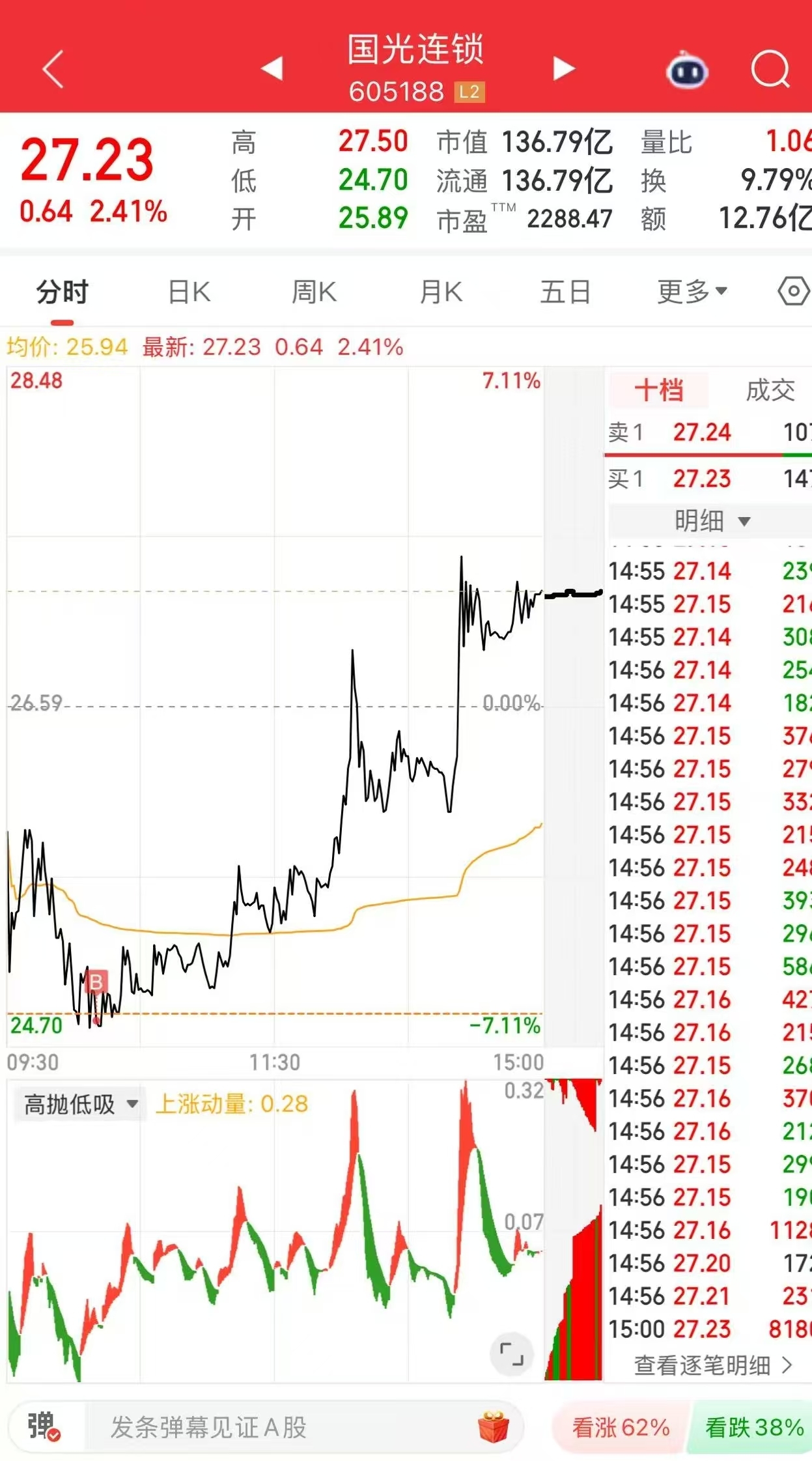 $国光连锁(SH605188)$ 国光连锁有多少朋友跟着我低位加仓的,10个点轻松到手,恭喜恭喜!比打板爽太多了!!!早上7个点本蛋哥已经发了实时买卖图,不做马后炮!!!