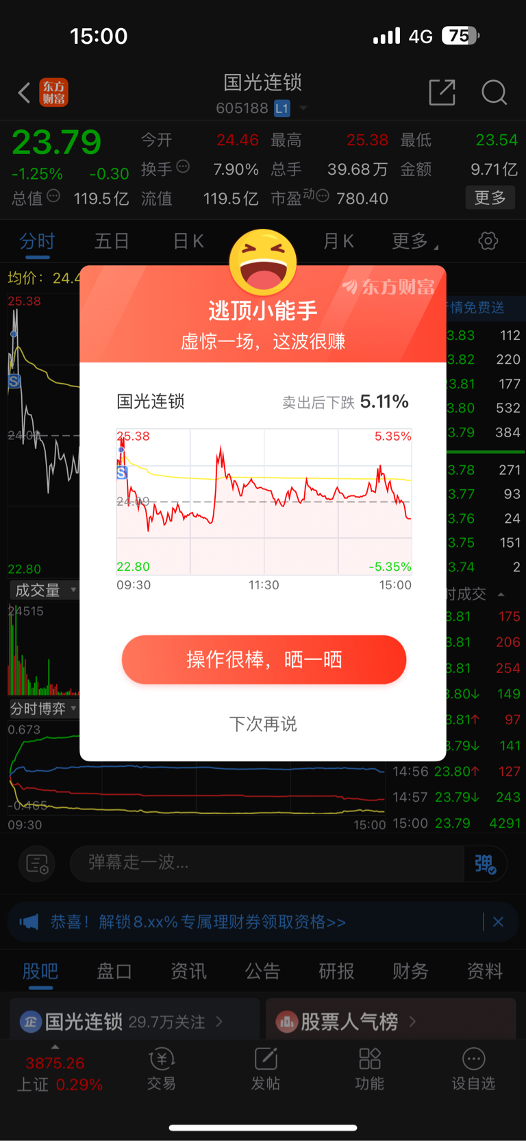 $国光连锁(SH605188)$ 昨天早上进、今天早上跑