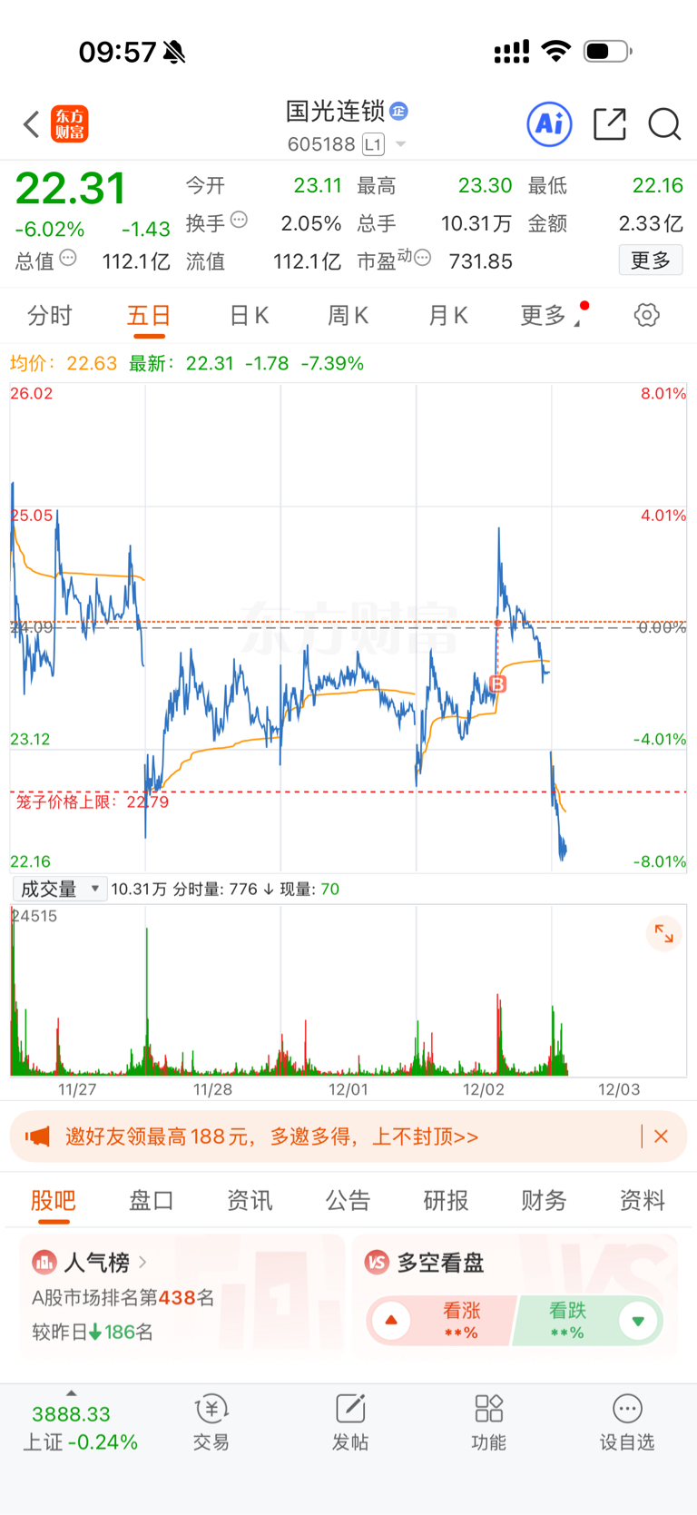 $国光连锁(SH605188)$ 我昨天买进去的,今天要跌停吗?