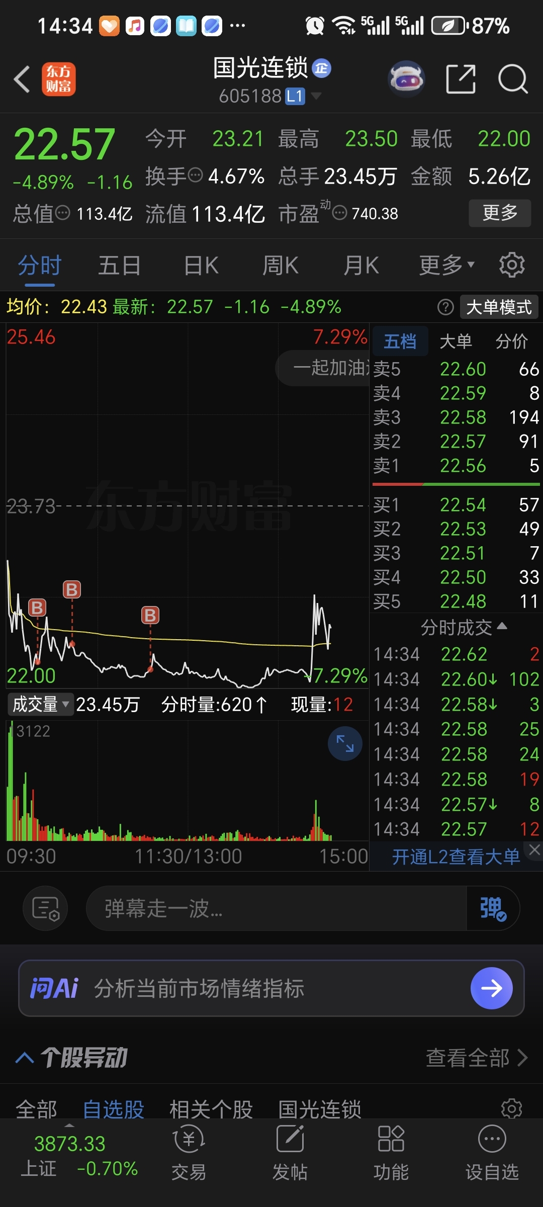 $国光连锁(SH605188)$ 拉升不够,做不了T,等明天再看看!