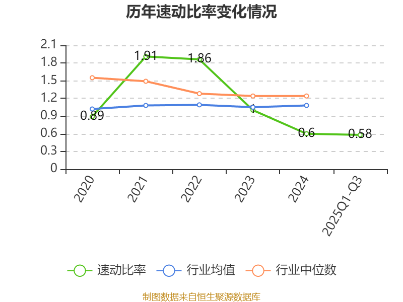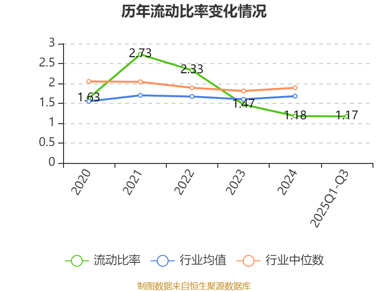 2025年前三季度,公司流动比率为1.17,速动比率为0.58。